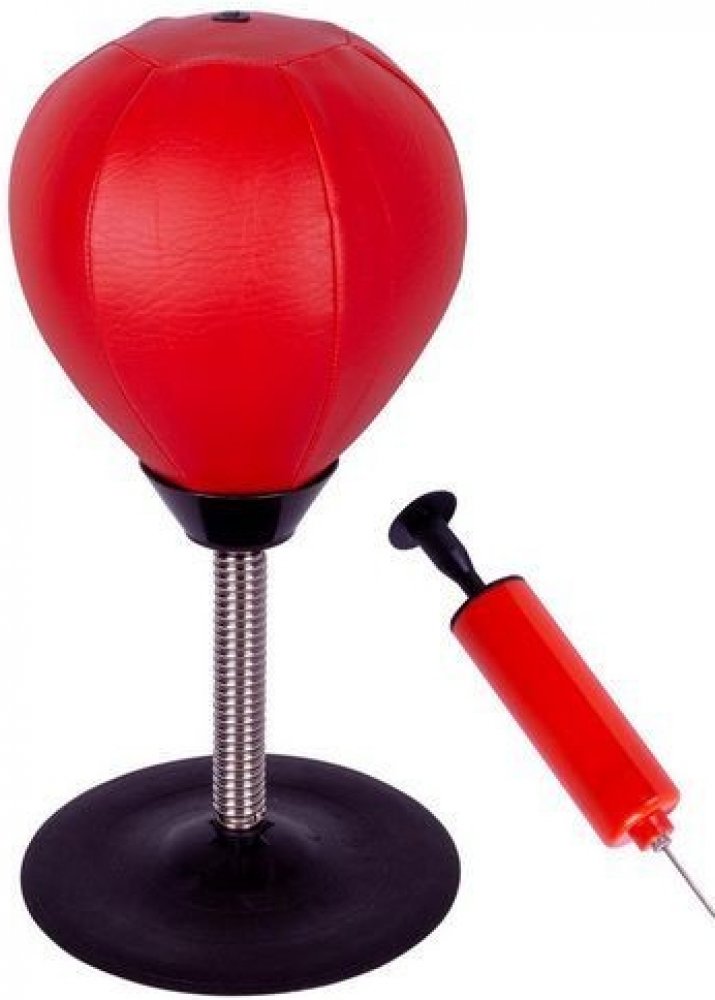 Robustní minifunkční boxovací hrušna na stůl nebo do kanceláře. Kaučuková přísavka spolehlivě přilne k jakémukoliv plochému povrchu. Tak je boxerský míč připraven na tvrdé zásahy. Pružná ocelová pružina umožňuje rychlý návrat hruškyzpět do původní polohy. Boxovací sada je dodávána s pumpičkou s jehlovým ventilem, můžete tak sami určit stupeň tvrdosti samotného míče. Technické údaje: celková výška: 35 cm boxovací hruška: barva: červená materiál: PU umělá kůže rozměry: Ø 17 cm výška: 20 cm barva stojanu: černá materiál stojanu: pryž rozměry stojanu: 20 cm hmotnost: 0,70 kg ocelová pružina plastová pumpička s jehlovým ventilem Obsah balení: 1x stojan 1x pružina 1x boxovací hruška 1x pumpička s ventilem montážní materiál a montážní návod