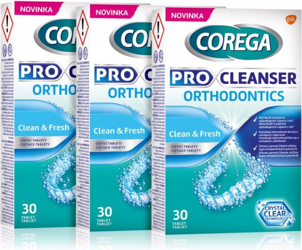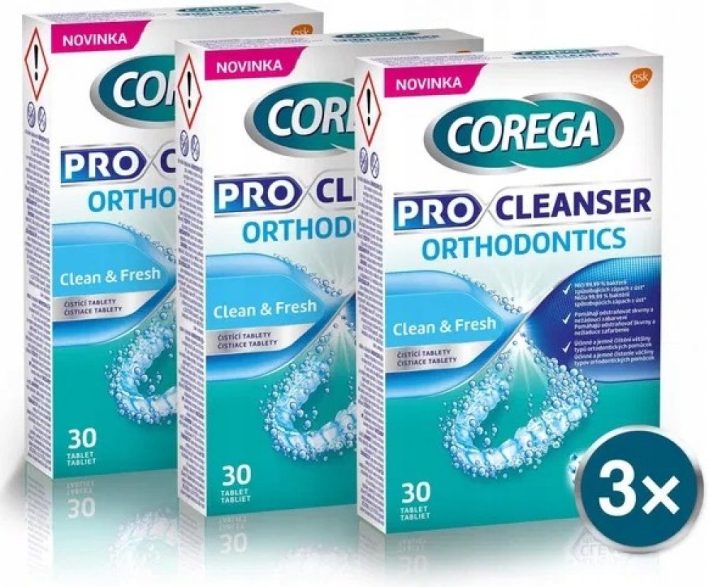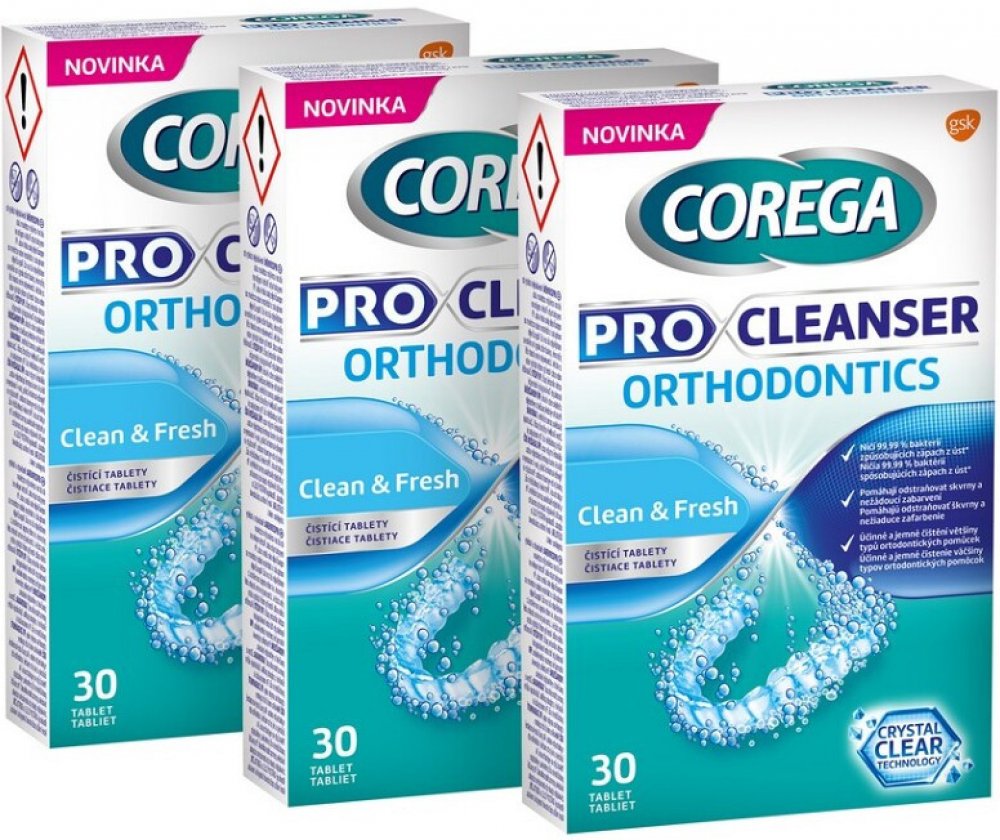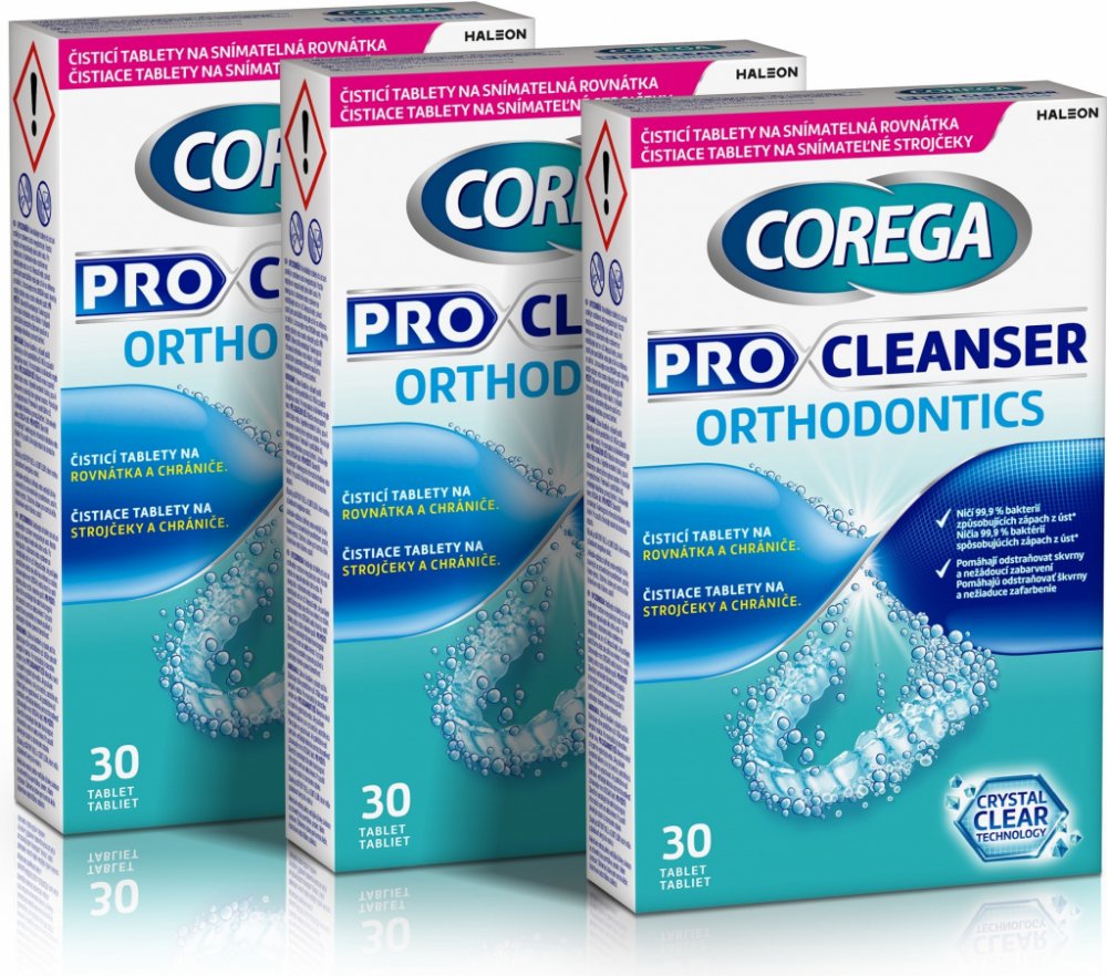 Čisticí tablety COREGA Pro Cleanser Orthodontics 3× 30 ks byly speciálně navrženy pro šetrné čištění ortodontických pomůcek. Jemné a neabrazivní složení účinně odstraňuje skvrny a nežádoucí zabarvení, čímž pomáhá udržovat čistotu a průhlednost vašich pomůcek. Díky jedinečné technologii Crystal Clear Technology zůstávají ortodontické pomůcky zářivé a čisté, což podporuje sebevědomý úsměv. Tablety n...