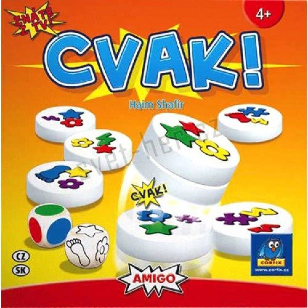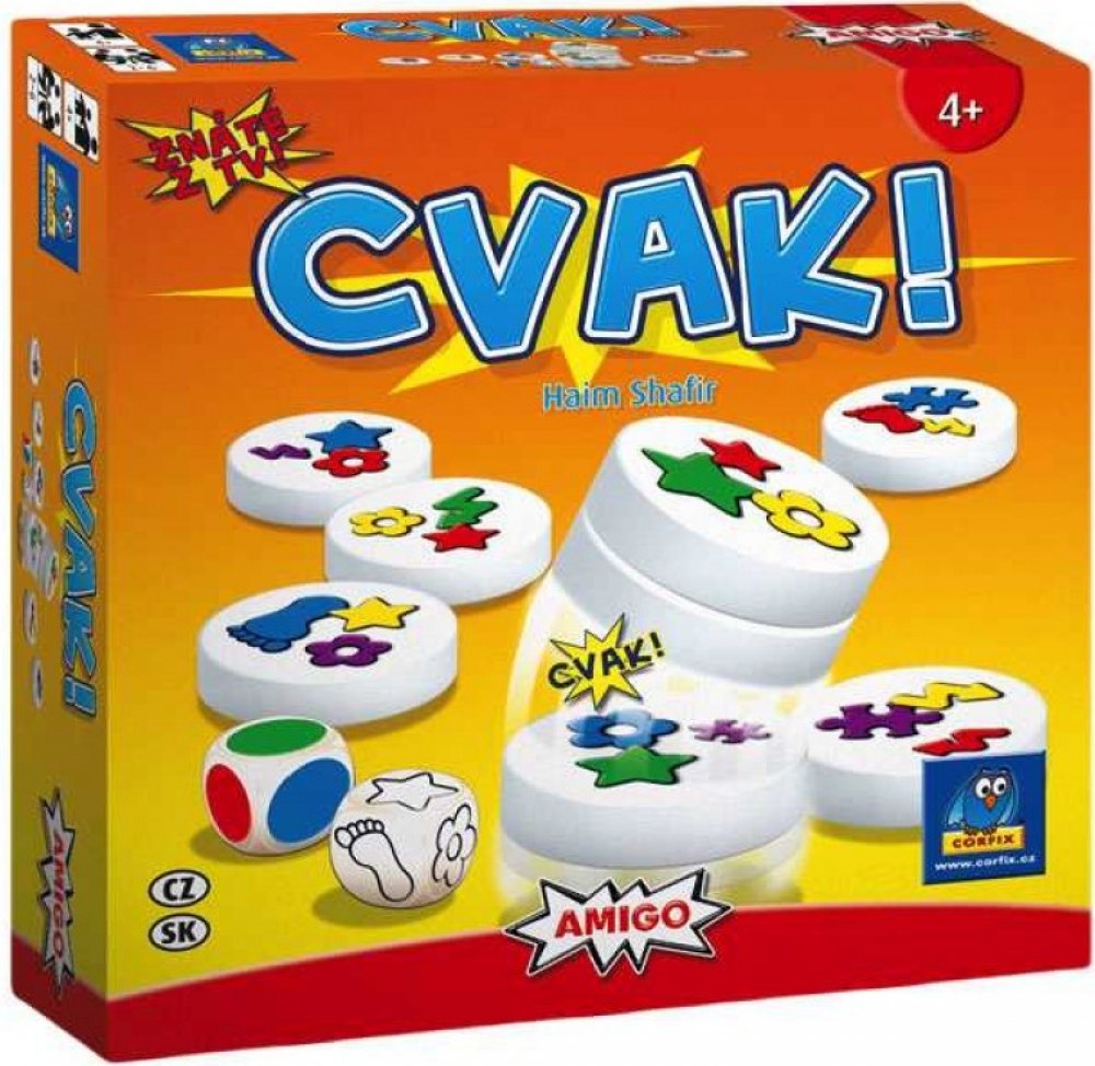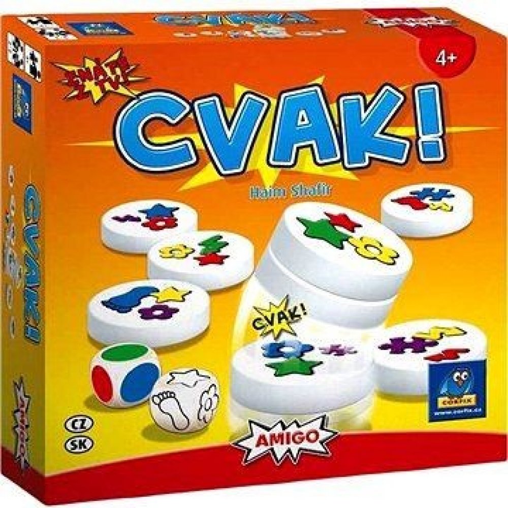 Cvak! je dynamická postřehová hra v poněkud netradičním provedení, její základ totiž tvoří obrázkové magnetky. Magnetky je potřeba na sebe co nejrychleji nacvaknout - jinak to totiž udělá někdo jiný... Hra probíhá tak, že všichni hráči současně prohledávají barevné magnetické hrací kameny. Na těch jsou vyobrazeny vždy tři barevné obrázky. Speciální kostky určují, která barva a který symbol se hledá. Je zapotřebí si dát rychle dvě a dvě dohromady a popadnout tu správnou magnetku. Pozor však na ostatní magnetky! Pokud do svého komínku vezmete chybný magnetický kámen, musíte pak do společné hromádky odevzdat nejen tento, ale také jeden již získaný kámen jako trest. Vítězí hráč, který má na konci hry nejvyšší magnetickou věž. Obsah balení: 36 barevných magnetek 2 speciální kostky