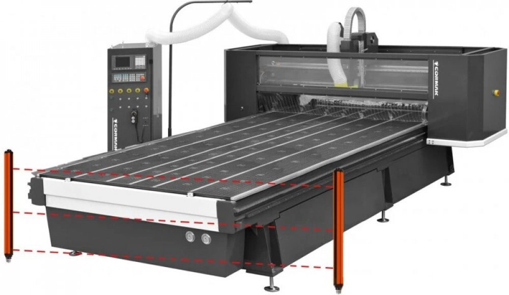 Popis stroje 1. Pracovní stůl Sekční stůl se šesti nezávislými vakuovými sekcemi, vyrobený z tuhého a robustního HPL, ovládaný přímo z ovládací skříňky, Každá sekce má otvory, do kterých je systémem trubek přiváděn podtlak z vývěvy, Hlavní otvory ve vakuovém stole jsou opatřeny zátkami pro umístění různých formátů materiálů, Povrch pracovního stolu je pokryt sítí kanálků, která umožňuje rovnoměrné...