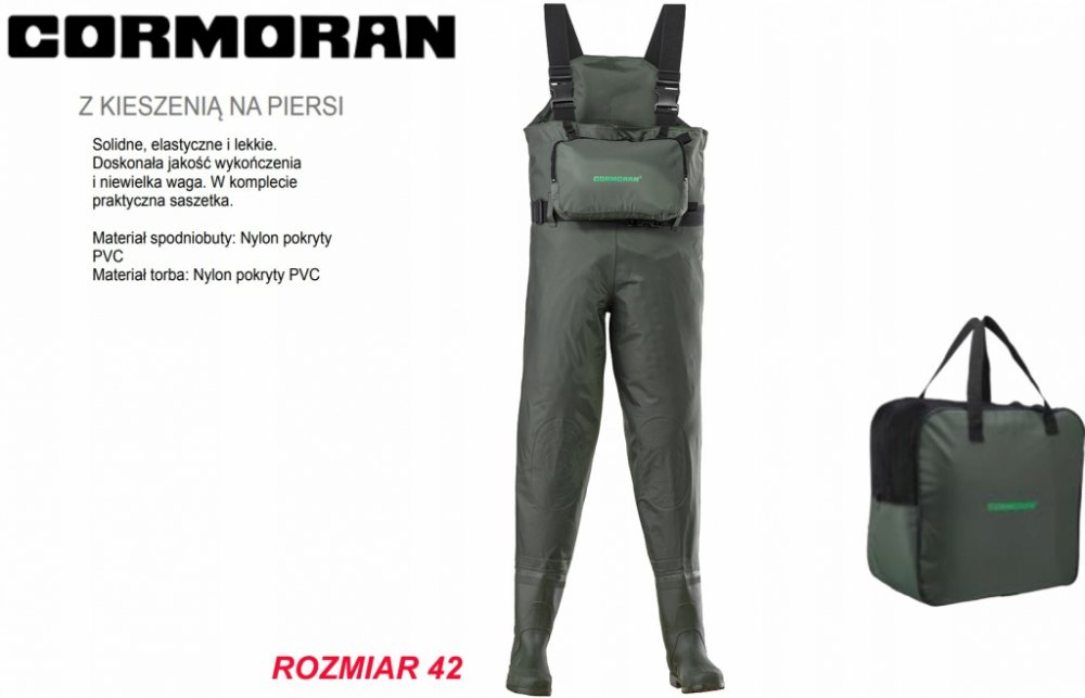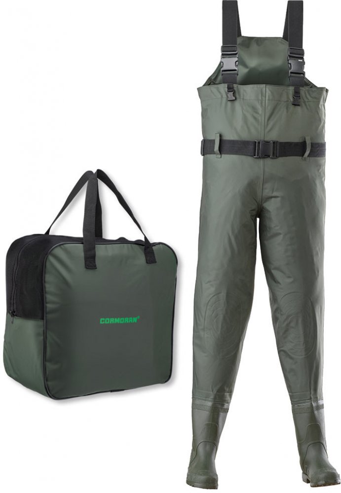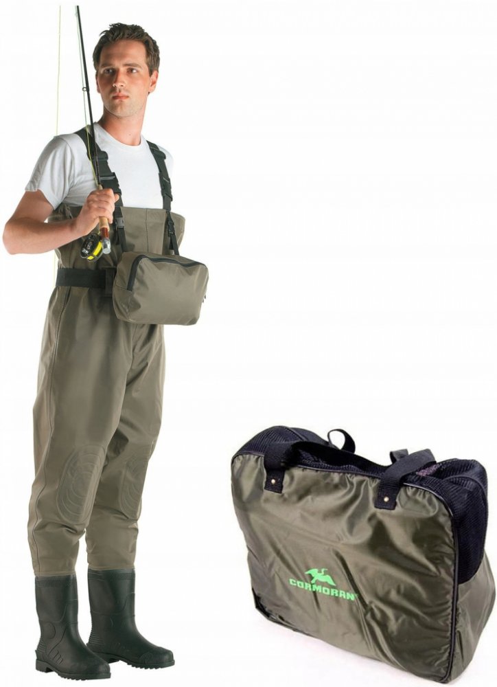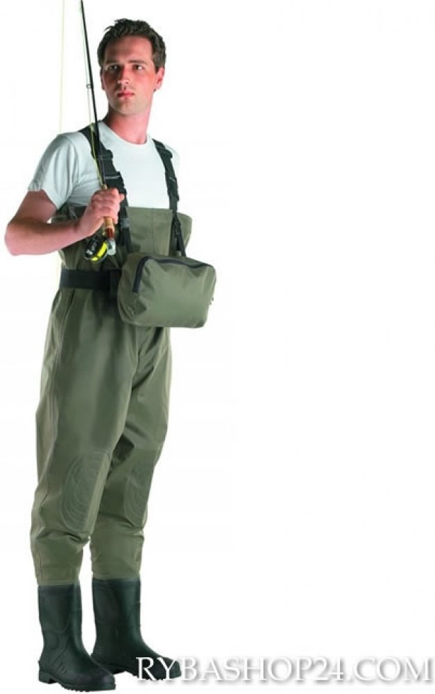Brodící kalhoty vyrobené z velmi odolné nylonové tkaniny potažené PVC - materiál 70D Nylon. Dvojité švy jsou podlepené, litá gumová bota s protiskluzovou tvarovanou podrážkou, je k látce přivařena dvojitým svárem. Ramenní popruhy tvaru H, s plastovými klipy, jsou z pevného materiálu proložené gumou k pohodlnějšímu pohybu ve vodě. Uvnitř kalhot je kapsa na doklady a v horní části je pak rukávec s integrovaným provázkem, zvyšující bezpečnost při brodění ve vysoké vodě. Kalhoty jsou dodávány se záplatou a lepidlem. Jak postupovat při lepení záplaty: * Ujistěte se že lepený povrch je čistý a suchý. * Pomocí zátky udělejte díru do tuby s lepidlem. * Na oba lepené povrchy naneste slabou vrstvu lepidla a nechte jej zavadnout. * Na oba lepené povrchy naneste druhou vrstvu a počkejte než začne být lepivá. * Přiložte záplatu na lepené místo a oba materiály pak opatrně přitlačte k sobě na dobu 24 hodin.