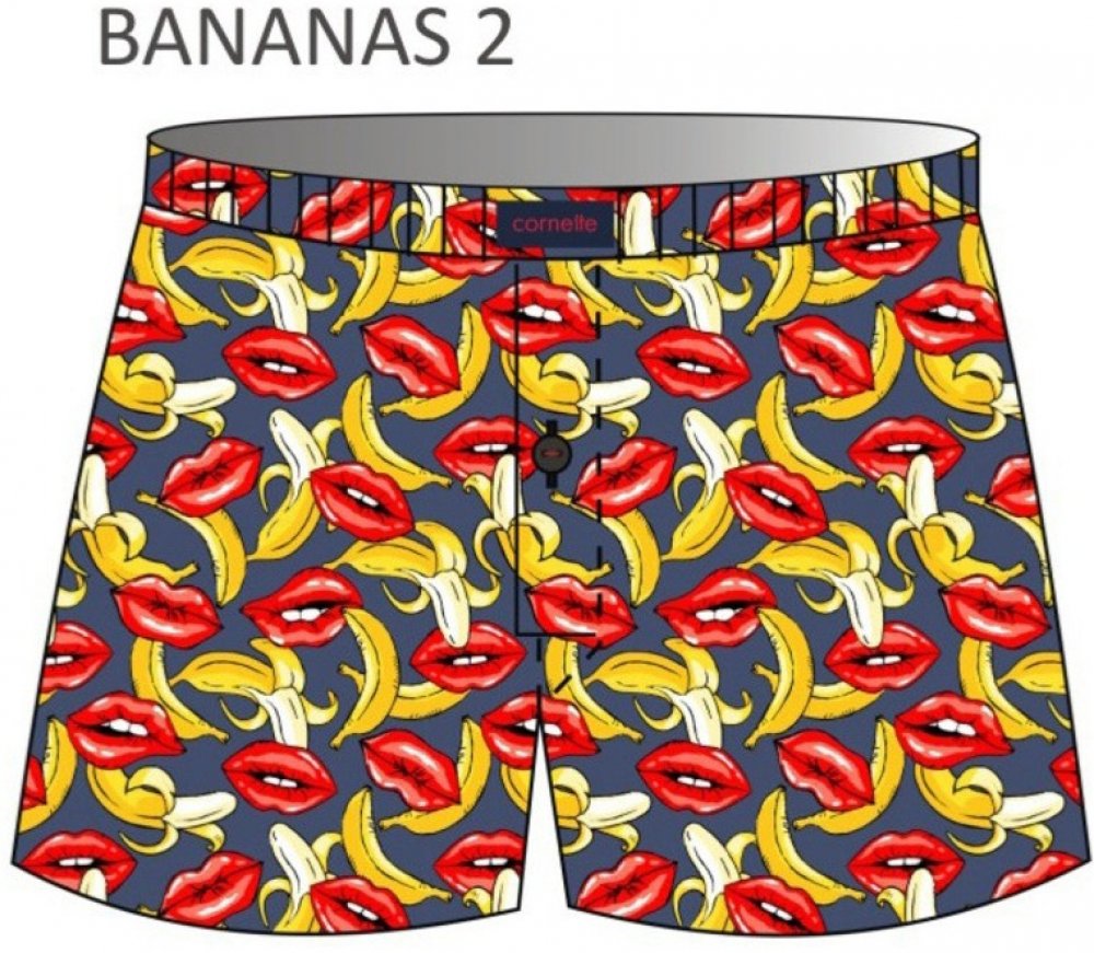 Pánské boxerky Cornette 048/07 Bananas 2 s pěkným potiskem. Trenýrky mají klasický volný střih. Komfort poskytuje široký gumový pásek, který je ozdoben logem Cornette. Trenýrky Cornette Classic jsou ideální pro každodenní nošení. Jsou vyrobeny z vysoce kvalitní bavlny, zajišťují pohodlí a jsou vzdušné. V přední části rozepínání na jeden knoflíček. Baleno v krabičce.