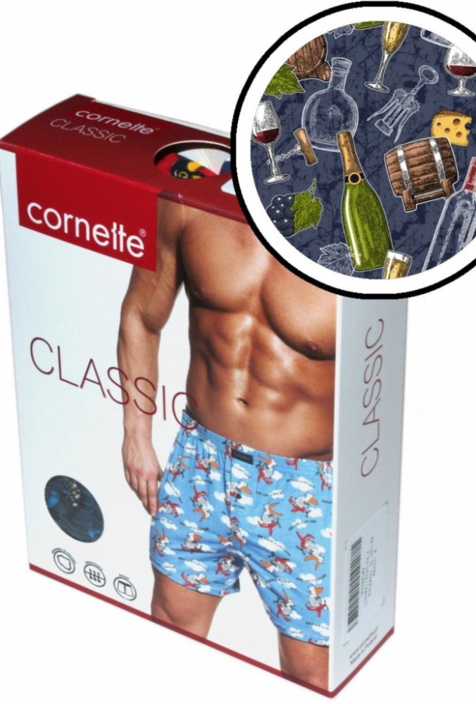 Pánské boxerky Cornette Classic 001/128 s pěkným potiskem. Trenýrky mají klasický volný střih. Komfort poskytuje široký gumový pásek, který je ozdoben logem Cornette. Trenýrky Cornette Classic jsou ideální pro každodenní nošení. Jsou vyrobeny z vysoce kvalitní bavlny, zajišťují pohodlí a jsou vzdušné. V přední části rozepínání na jeden knoflíček. Baleno v krabičce.