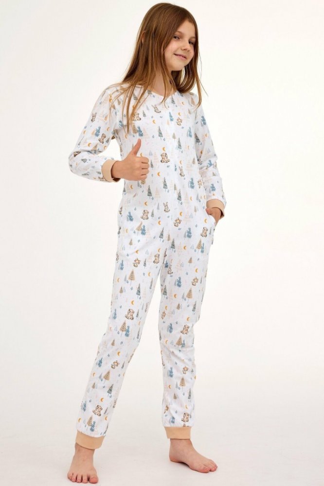 Dívčí overal na spaní Cornette je vyroben z kvalitní bavlny, která zajišťuje maximální pohodlí během spánku. Materiál: 100% bavlna Zapínání: praktický dlouhý zip pro snadné oblékání a svlékání, zip je podložený bavlnou (neškrábe) Design: jemný a veselý motiv s lesními zvířátky, který potěší každou malou slečnu