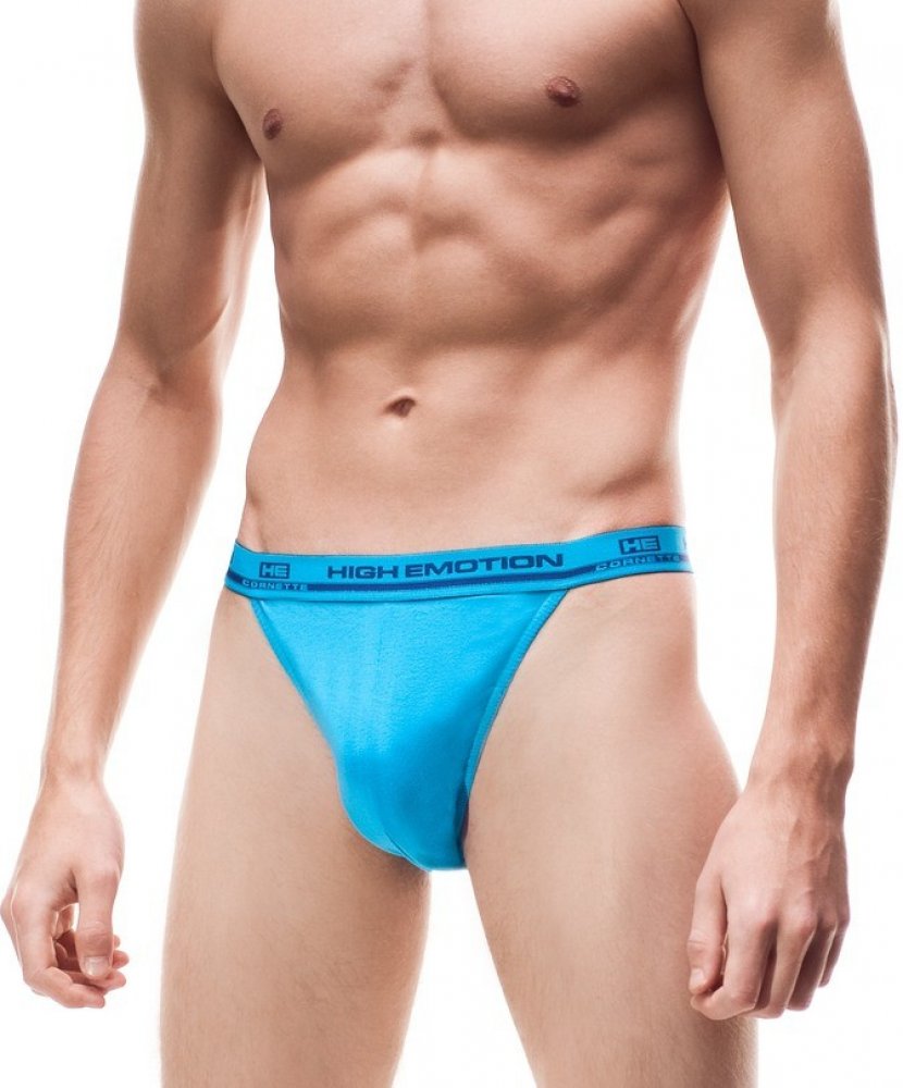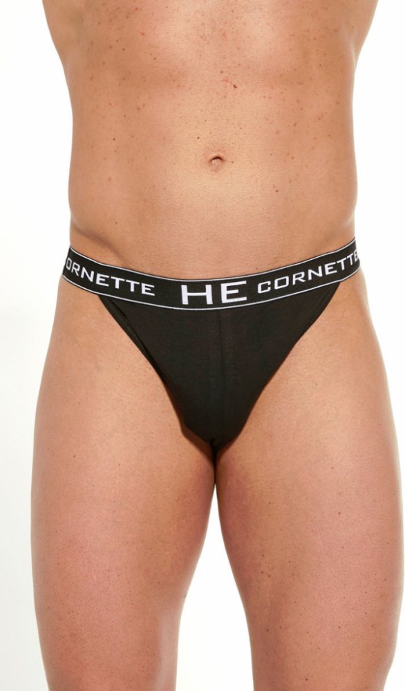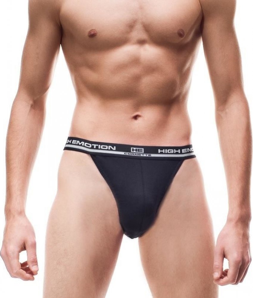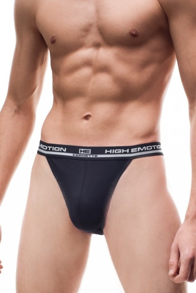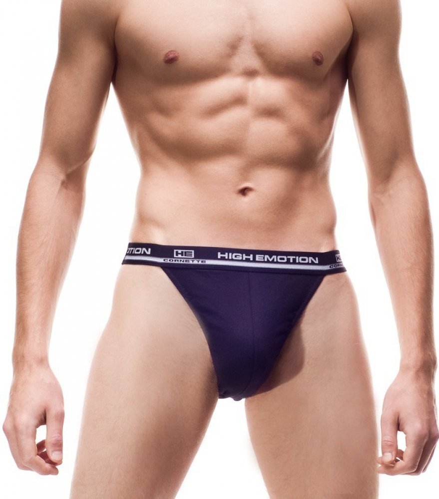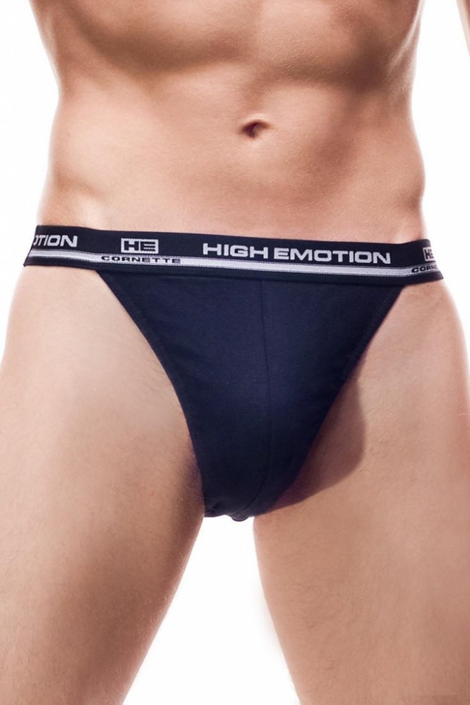 Pánská tanga high emotion Cornette - tmavě modrá barva - jsou vyrobena z příjemného materiálu - v pase je pevná guma s nápisem v kontrastní barvě