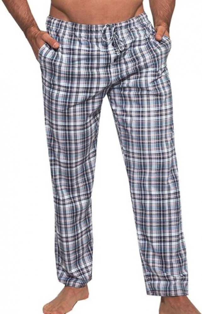 Pánské domácí kalhoty z kolekce Cornette. Dlouhé bavlněné kalhoty jsou v potisku moderní kostičky. V pase jsou do gumy, která jde navíc stáhnout pomocí šňůrky. Na bocích jsou dvě kapsy. Poklopec jde rozepnout pomocí dvou knoflíčků. Velice pohodlný materiál.