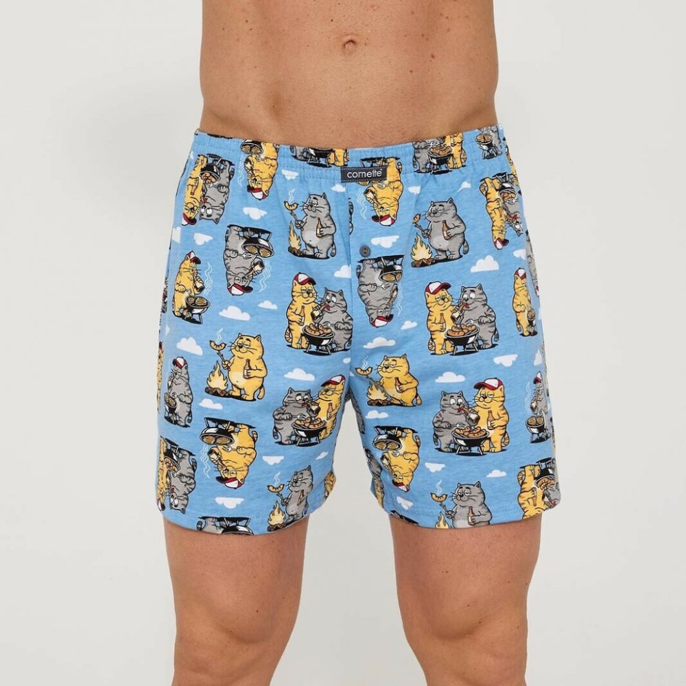 Pánské trenýrky mají klasický volný střih. Komfort poskytuje široký gumový pásek, který je ozdoben logem Cornette. Cornette trenky jsou ideální pro každodenní nošení. Trenýrky jsou vyrobeny z vysoce kvalitní bavlny. Bavlněné trenky zajišťují pohodlí a jsou vzdušné. Vtipné trenýrky mají v přední části rozepínání na jeden knoflíček. Baleno v krabičce.