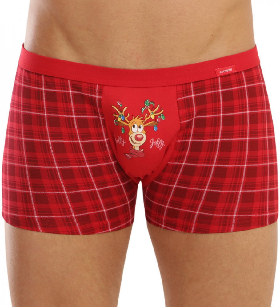 Pánské červené boxerky s vánoční tématikou. Ideální jako dárek. Sportovní střih přiléhavý na tělo. Měkký, elastický, vysoce kvalitní bavlněný úplet. Potažená guma v tunelu. Známá značka Cornette. Výrobek je zabalen v krabici. Složení: 95% bavlna, 5% elastan.