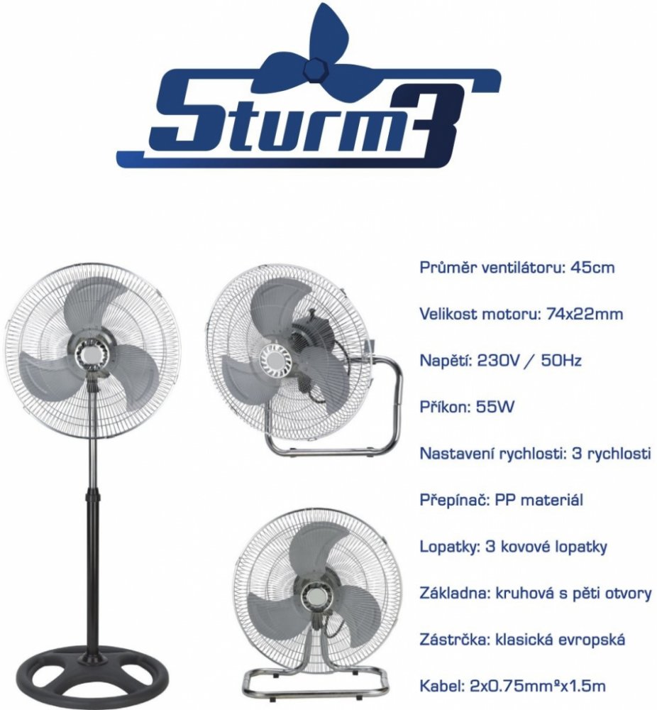 Sturm 3 55 W podlahové 230 V pro dílny, garáže, sklady jednoduchá výměna 45 cm 6 kg AC motor manuální