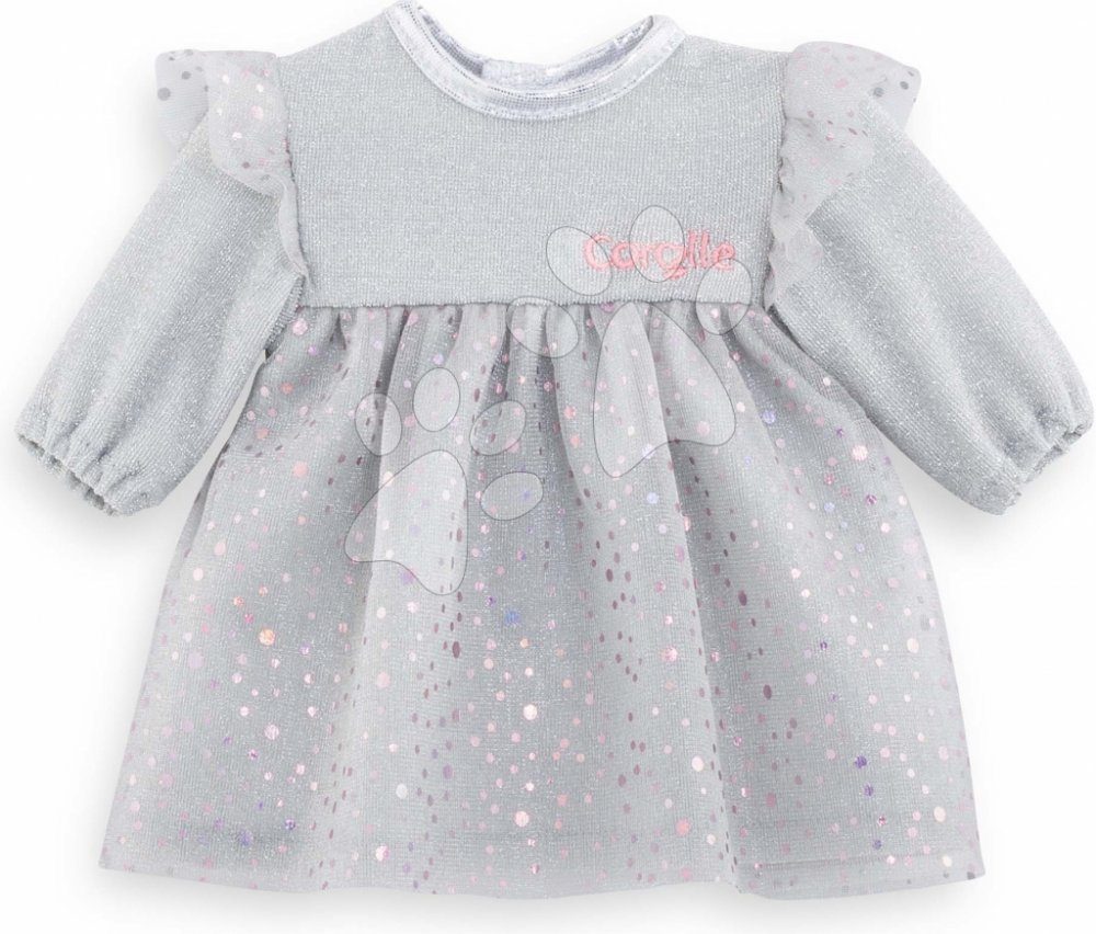 S nádhernými stříbrnými šaty na večer z kolekce Party Night Corolle mohou děti svou panenku převlékat kdykoli se jim zachce. Dokonale propracované detaily tohoto oblečení a prvotřídní materiály zpestří každou hru s panenkou, která rozvíjí dětskou fantazii, ale také komunikační schopnosti a hmatovou citlivost. Hra na profese je v raném dětském věku velmi důležitá, protože děti mimo jiné poznávají vlastní emoce a přebírají zodpovědnost za své činy. Díky obrovskému množství doplňků Corolle mohou děti své panenky krmit, přebalovat, uspávat či koupat, a to vždy ve společnosti těch nejlepších a nejkrásnějších hraček. Oblečení Corolle perte ručně při maximálně 40 °C pouze s použitím jemného tekutého mýdla.