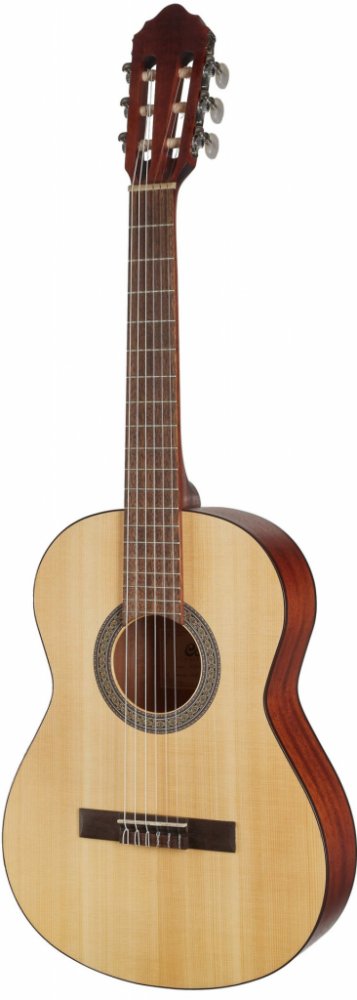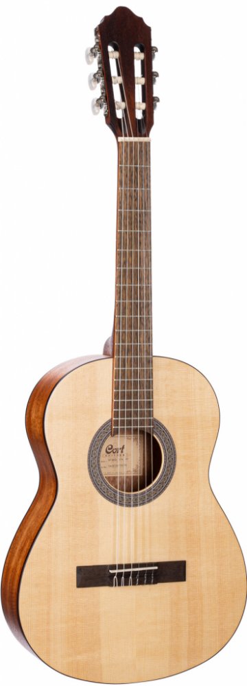 Dětská klasická kytara Cort AC-200 3/4 je dětská klasická kytara ve 3/4 velikosti s polomasivní konstrukcí, která používá veškeré osvědčené postupy jako např. žebrování typu „Fan“, tj. ten nejčastější vzor používaný u klasických kytar. Tělo kytary je zhotoveno z masivní přední smrkové desky a zadní desky a lubů z překližovaného mahagonu. K rovněž mahagonovému krku je přilepen hmatník ze dřeva merbau osazený dvaceti pražci. Tradici ctí i design ladících mechanik a zdobná rozeta. Kytara je dodávána v obalu.
