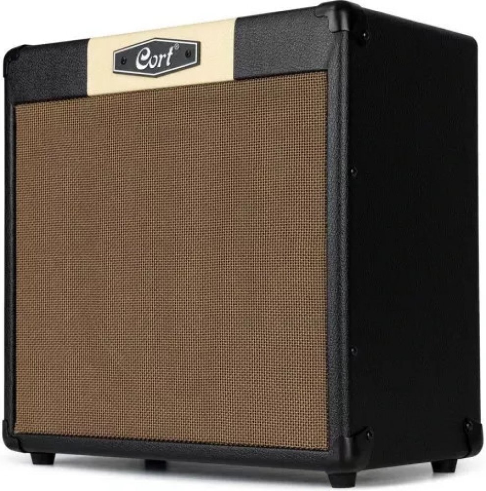 Kytarové tranzistorové kombo Cort CM 30R WTS je tranzistorové kombo pro elektrickou kytaru, které ocení úplní začátečníci i zkušenější hráči. S výkonem třiceti wattů obstojí ve zkušebně i na klubových akcích. Jeho desetipalcový reproduktor produkuje čistý a vyvážený zvuk bez nežádoucího dokreslení. Dva kanály komba (clean/crunch, gain) nabízí zvukově vše od krystalicky čistých tónů, přes bluesový crunch po hard/heavy zkreslení, takže si na své přijdou kytaristé s preferencemi napříč hudebními žánry. Zvuk lze upravit pomocí třípásmového ekvalizéru nebo okořenit přidáním digitálního reverbu. Vaše oblíbené pedálové efekty typu reverb, delay, tremolo nebo chorus umístíte do efektové smyčky komba. Sluchátkový výstup pro tiché a nerušené hraní oceníte při cvičení v domácích podmínkách. K tomu si můžete pouštět podklady z vašeho telefonu či jiného audio zařízení, a to jak přes aux in konektor komba, tak i bezdrátově díky kompatibilitě s Bluetooth. Díky vintage designu s potahem v pískové barvě kombo Cort CM 30R WTS zcela přirozeně splyne i s prostředím vašeho bytu, takže i v klidovém stavu zafunguje jako stylový bytový doplněk.