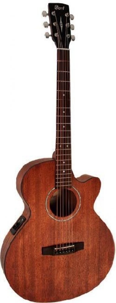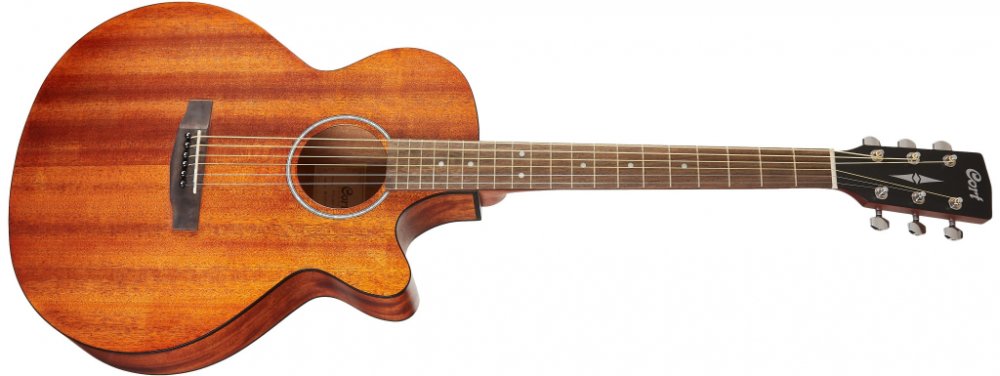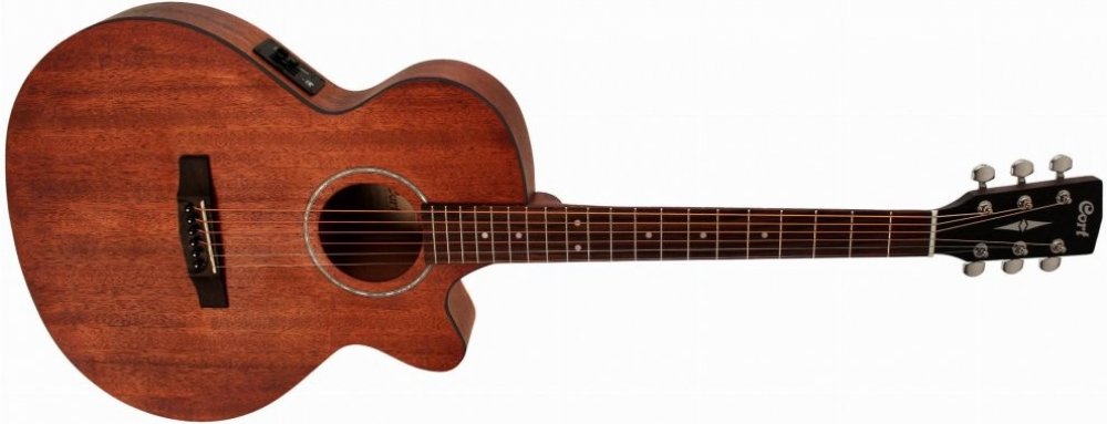 Elektroakustická kytara série Cort SFX vcelomahagonovém provedení. Tvar těla SFX má užší luby pro eliminaci zpětné vazby, proto se tyto nástroje hodí na živá vystupování. Cort SFX-MEM má celomahagonové tělo a mahagonový krk s šíří hmatníku 43mm.
