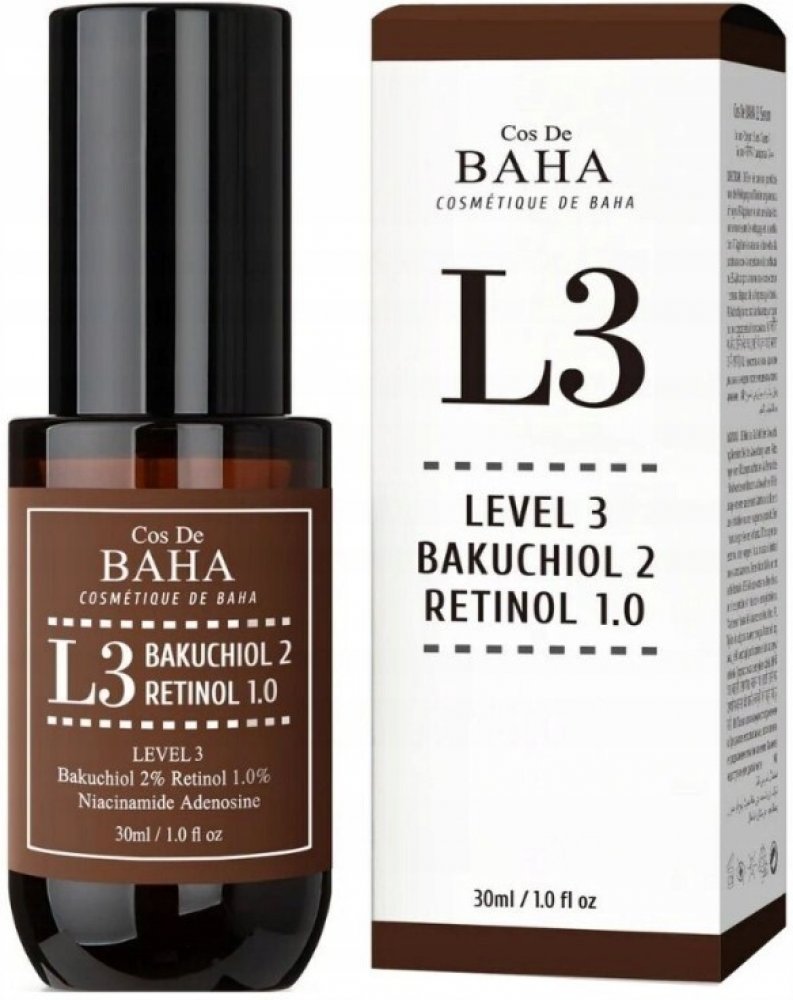 Cos De BAHA L3 Bakuchiol & Retinol Serum je moderní sérum proti stárnutí, které bylo vyvinuto pro komplexní péči o pleť s prvními známkami stárnutí. Díky obsahu 2% bakuchiolu a 0,15% retinolu sérum účinně zpomaluje proces stárnutí, snižuje viditelnost vrásek a zlepšuje pevnost a pružnost pokožky.