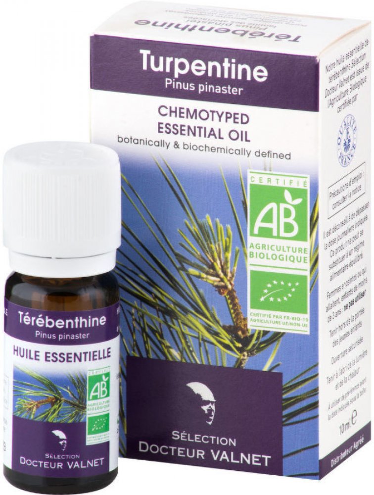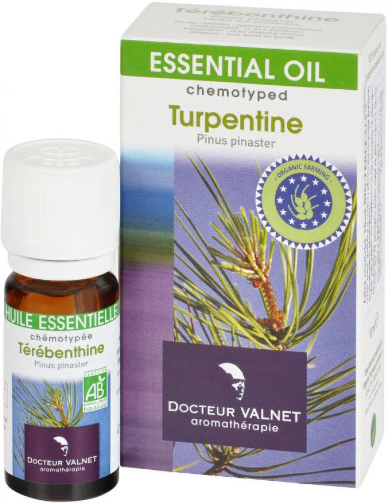 Prvotřídní bio éterický olej Dr. Valneta. Terpentýnový éterický olej se získává destilací pryskyřice z borovice přímořské (Pinus pinaster).
