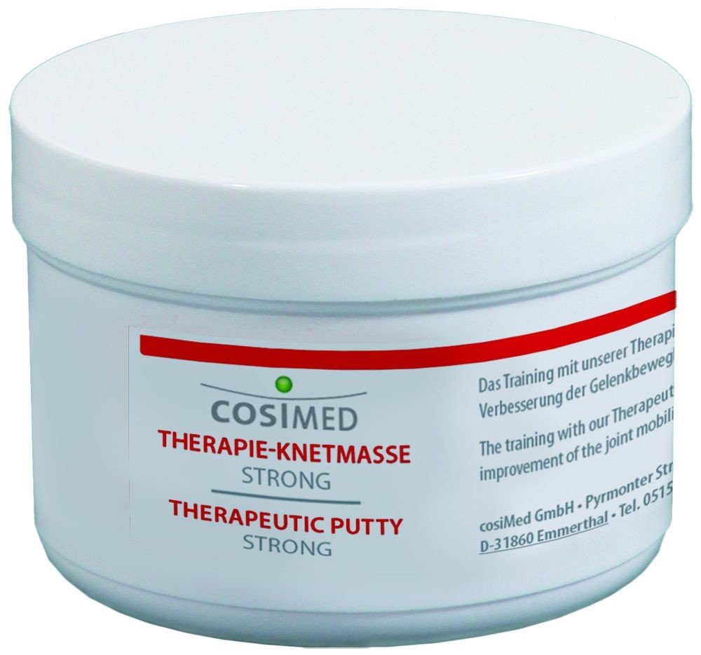 cosiMed terapeutická hmota - 85 g, tvrdá CosiMed terapeutická hmota je vyrobena ze siloxanových elastomerů, které jsou zdravotně nezávadné, protože neobsahují žádné škodlivé látky. Dále hmota nelepí, není mastná a je antibakteriální. Používá se pro cvičení horních končetin, zejména ruky, prstů a dlaně.
