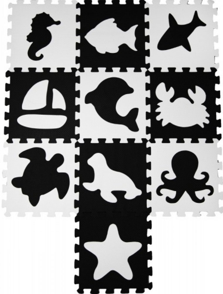 COSING Pěnová podložka puzzle - OCEAN 10ks* Pomáhá dětem stimulovat vizuální, hmatové smysly a celkově rozvíjí senzomotorické schopnosti. * Posiluje schopnost myšlení, kreavitivu a soustředěnost. * Podložka v dětech rozvíjí trpělivost a zvyšuje koordinaci tělesných funkcí. * Pěnové puzzle s vroubkovaným povrchem a vyjímatelnými částmi s různými druhy mořských zvířátek. * Vyrobeno z ho, netoxického, bezftalátového materiálu. * Měkká, bezpečná, snadno omyvatelná, lehká, odolná, barevná, vzdělávací a podlahová dekorace. * Tlumí hluk a skvěle izoluje. * Splňuje veškeré bezpečnostní normy EN71/ASTM / AS/NZS ISO8124. * Balení: 10ks puzzle; Velikost 1 dílu: 32x32x1 cm * Vhodné pro děti od 3 let. Pěnové puzzle - 10 dílků v balení, téma zvířata, podlahové, vhodné od narození