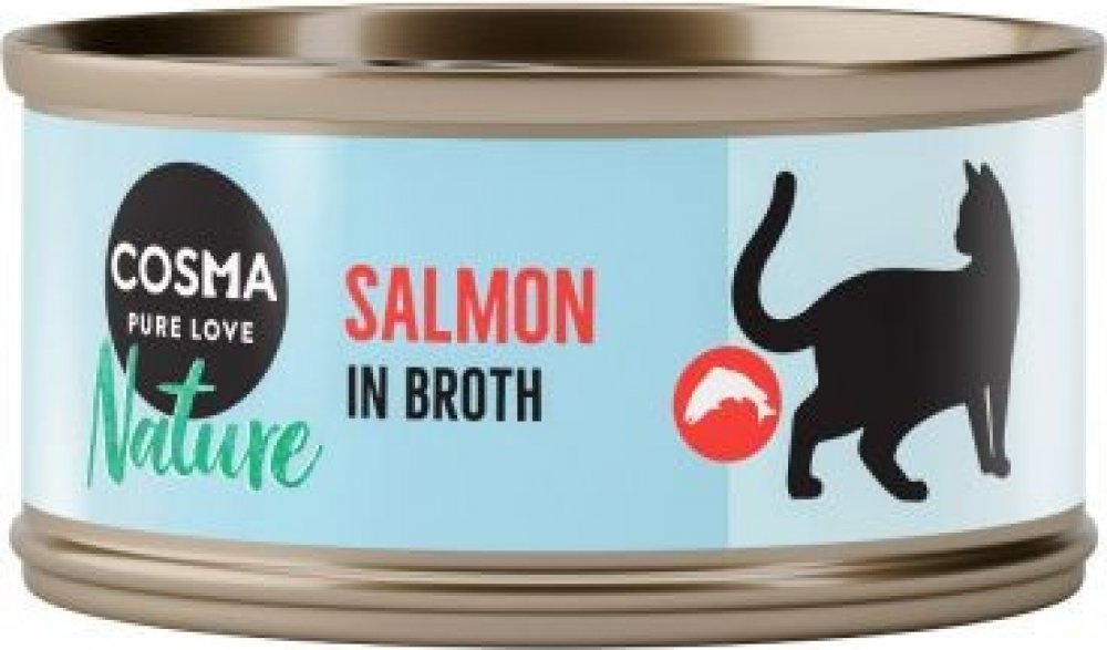 Cosma Nature je přírodní krmivo pro kočky s vysokým podílem ryb nebo masa až 75%. Velké množství různých kombinací s delikátním tuňákem, jemným kuřecím filetem či s vynikajícím lososem - také v kombinací s krevetami, kuřecí šunkou či sýrem - se postará a pestrost v misce kočky. Všechny přísady jsou dušené ve vlastní šťávě. Díky tomu zůstává zachovaná nefalšovaná a čistá chuť - pro mimořádný zážite...