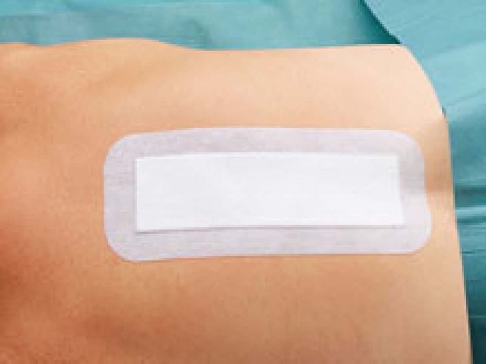 Polštářek je vyroben ze savé viskózy zabalené v nepřilnavé pórovité vrstvě. Nosný materiál z netkaného textilu s hypoalergenním lepidlem.