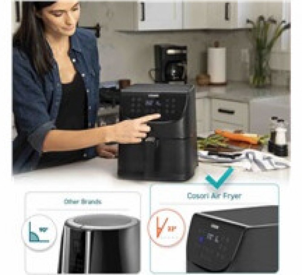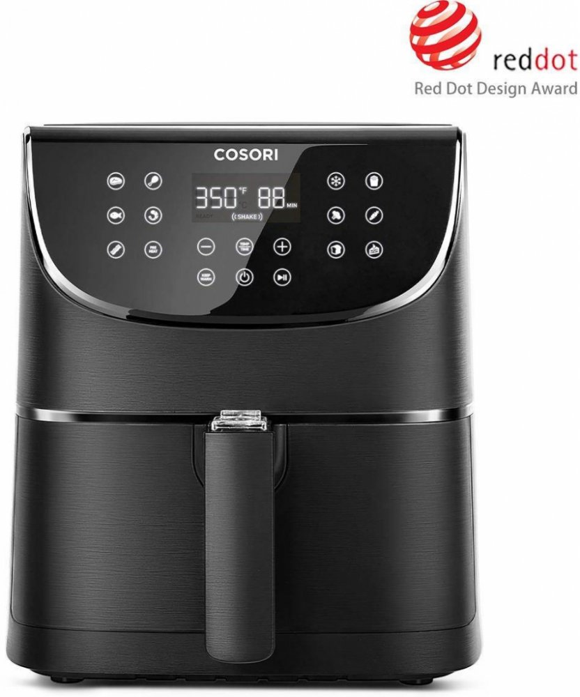Design horkovzdušné fritézy COSORI CP158-AF byl navržen v Kalifornii. Díky své praktičnosti, funkcím, ovládání i přehlednému dotykovému nakloněnému LED displeji se snadno přístupnými tlačítky získal také prestižní ocenění Red Dot Award a Design Award za nejlepší design. Povrchová úprava je navíc odolná vůči otiskům prstů, takže fritéza bude ve vaší kuchyni vypadat pořád skvěle. Podle prodejních statistik je značka COSORI také nejprodávanější značkou horkovzdušných fritéz v USA.