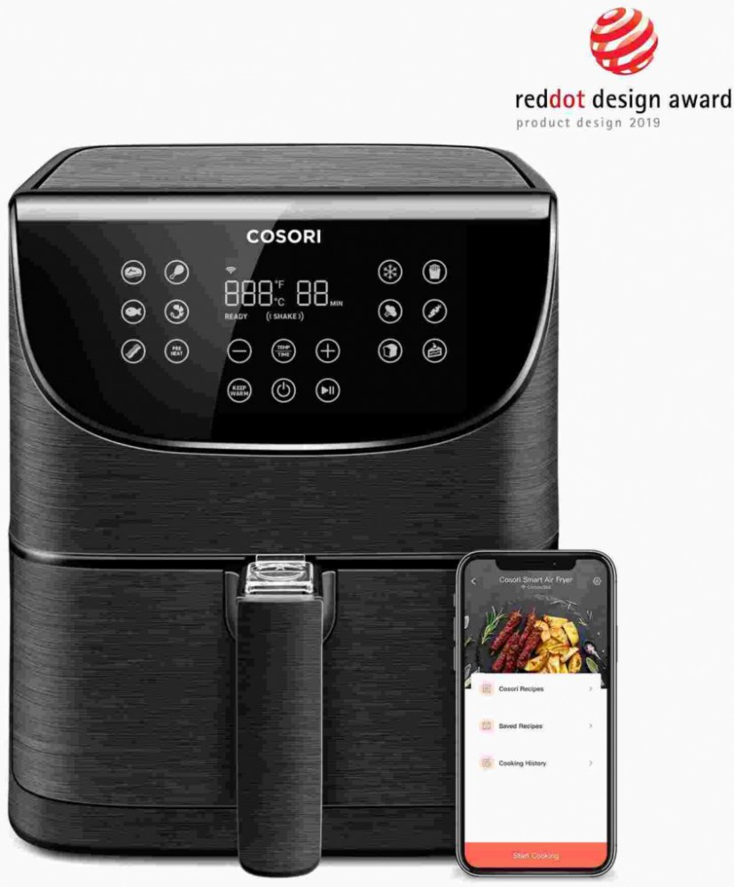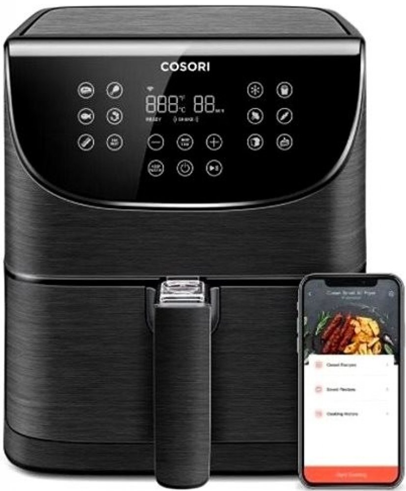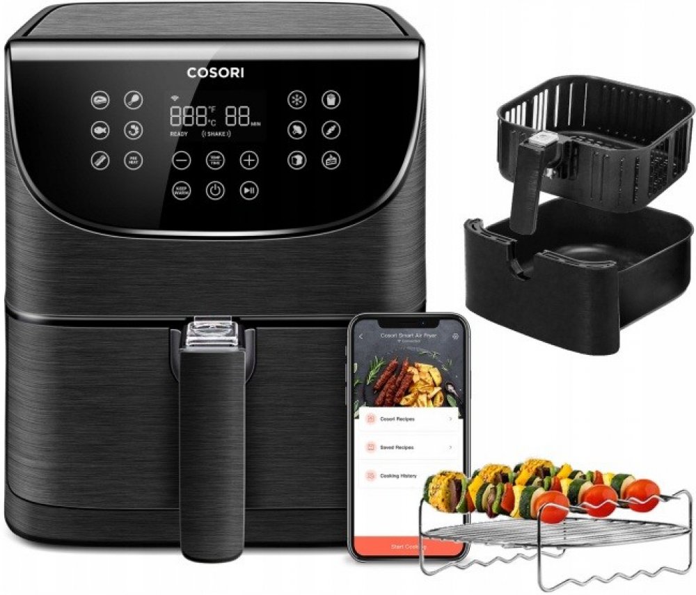 S horkovzdušnou fritézou COSORI CS158-AF PREMIUM SMART si můžete užít vaše oblíbená smažená jídla bez výčitek, protože na rozdíl od běžného smažení nebo fritování je v této horkovzdušné fritéze možné připravovat jídla za použití velice malého množství oleje nebo vůbec žádného. Kombinace cirkulujícího horkého vzduchu, dokonalé teploty vaření a chytrých programů zajistí, že hranolky budou vždy krásně křupavé a kuřecí stehna šťavnatá. Programy si rychle a pohodlně můžete nastavit také přes Smartphone nebo Amazon Alexa a Google Assistant. Až budete mít hotovo, čištění bude stejně snadné díky nepřilnavému koši, který lze mýt v myčce. Díky veliké nádobě s objemem 5,5l navíc dokážete rychle navařit i pro větší rodinu nebo skupinu hostů.