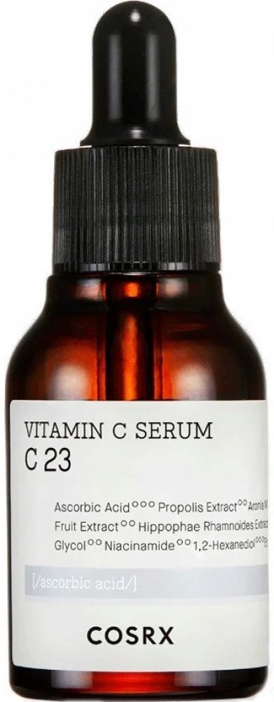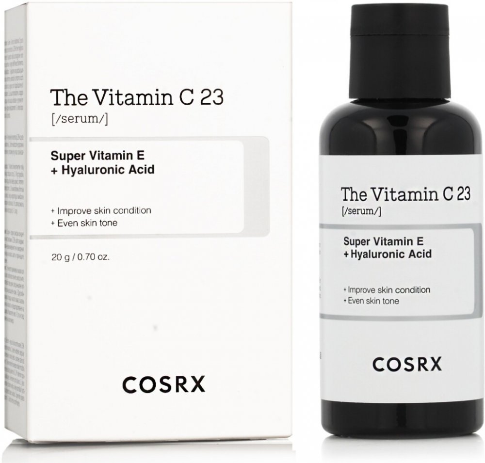 Vitamin C (23% kyselina askorbová): Pomáhá zesvětlovat pigmentové skvrny a sjednocuje tón pleti. Podporuje tvorbu kolagenu, což zpevňuje pokožku a redukuje jemné linky a vrásky. Silný antioxidant, který chrání pokožku před poškozením způsobeným volnými radikály a UV zářením.