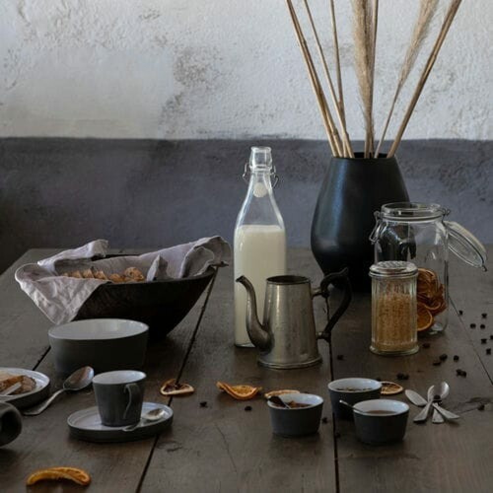 Lagoa Eco Gres® je vyrobena z patentovaného jílu, složeného z recyklovaných a zcela udržitelných materiálůLagoa Eco Gres® se vyznačuje kontrastními glazurami, matnou a tmavě šedou barvou na vnější straně a průsvitnou bílou s černou uvnitřTexturovaný povrch dodává této moderní kolekci hřejivý nádechDokonale nedokonalý tvar, přirozený a příjemný design kolekce Lagoa Eco Gres® vyvažuje ručně vyráběné řemeslné prvky s moderními povrchovými úpravamiKAMENINOVÉ NÁDOBÍ: Ne všechna kamenina je vyrobena stejněVe skutečnosti neexistuje standardní, univerzální definice kameniny a toto slovo je často zneužíváno k popisu jiných keramických výrobkůV továrnách v portugalské COSTA NOVA se starodávné dovednosti modelování a zdobení spojují s moderní technologií ve speciálním procesu, který vyrábí vysoce kvalitní jemné kameninové výrobky, které vydrží každodenní používání po mnoho letTato kamenina, vyrobena v jediném vypalovacím systému zahřátém až na 1180?C (2160?F), je velmi pevná a odolnáJejí glazovaný povrch je celoskelněný, což dává produktům vysokou odolnost vůči tepelným i mechanickým šokůmDOPORUČENOU PÉČI O KAMENINOVÉ NÁDOBÍ NALEZNETE V ZÁLOŽCE TECHNICKÉ SPECIFIKACEKameninové výrobky COSTA NOVA jsou ručně zpracovány, což jim dodává jedinečný charakterJakékoli nepravidelnosti, barevné odchylky nebo drobné nedokonalosti by neměly být považovány za vady, ale za jedinečné známky pravostiSKLENĚNÉ NÁDOBÍ: Skleněné nádobí pod značkou COSTA NOVA je vyrobeno v EvropěKolekce skla jsou vyrobeny buď z lisovaného skla nebo je sklo foukané pomocí poloručních metodSklenice lze bezpečně používat v myčce nádobíRuční mytí však prodlouží životnost výrobkůDOPORUČENOU PÉČI O SKLENĚNÉ PRODUKTY NALEZNETE V ZÁLOŽCE TECHNICKÉ SPECIFIKACE