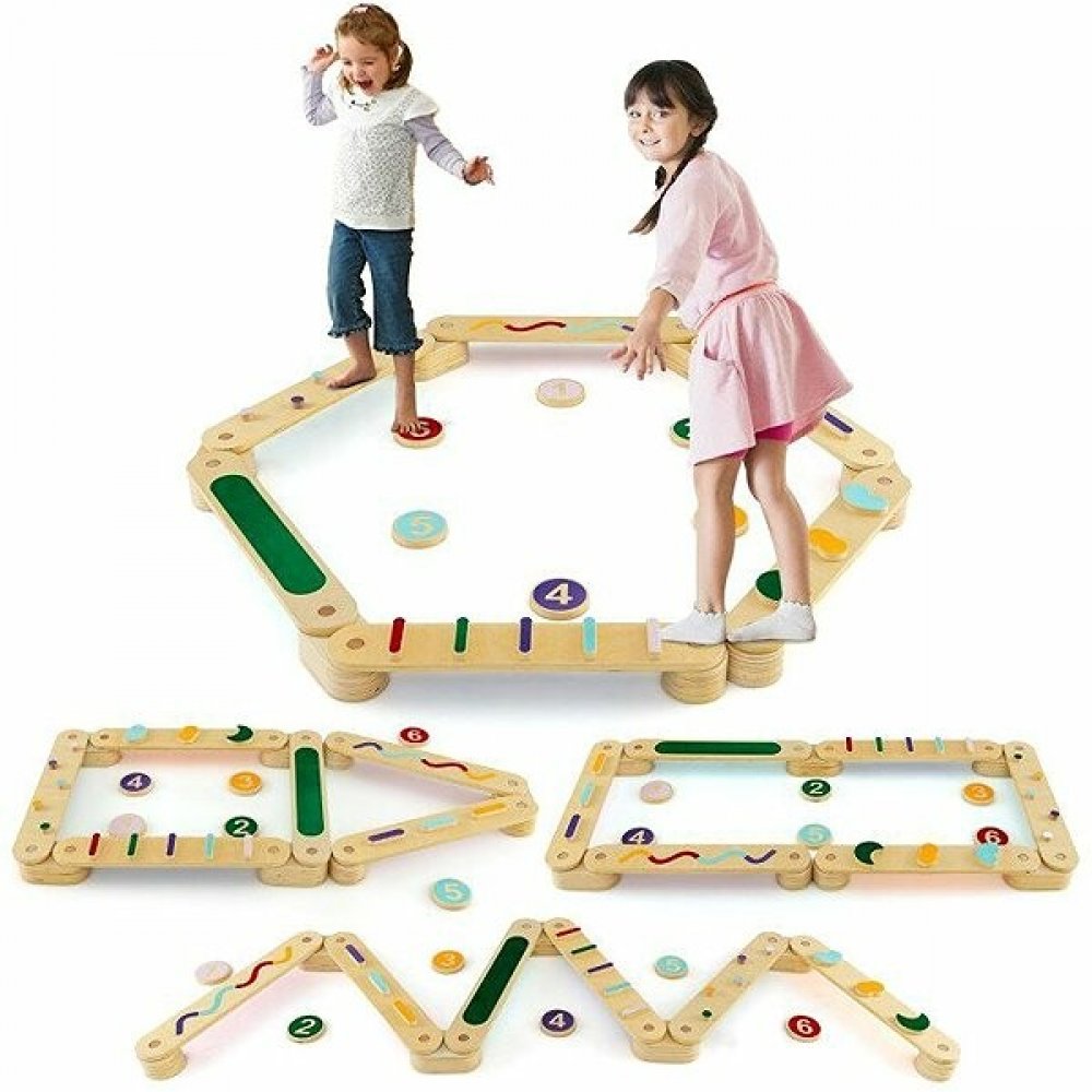 Klíčové vlastnosti balančního chodníku s balančními kameny a čísly CostwayBalanční dráha Obsahuje 6 kladin a 6 nášlapných kamenůJednoduchý systém vkládání jednotlivých částí dohromady, umožňuje stavět balanční dráhy libovolným způsobem Lze vytvářet tak různě složité úrovněVícebarevné provedeníVyrobeno z březové překližkyVhodné od 3 letObsah balení:6× kladina, 6× nášlapné kameny, 5× dlouhá základna...