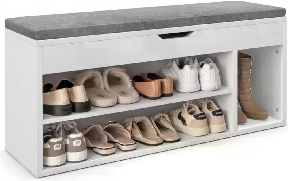 Botník s lavicí působí kvalitním dojmem a odnímatelný sedák je pohodlný. Výška police je ideální pro malé děti, které se na ni mohou pohodlně posadit. Boty lze umístit do 3 spodních přihrádek a pod odklápěcím víkem je také úložný prostor, kam lze uložit užitečné předměty, jako jsou pomůcky na čištění bot, rukavice a další drobnosti. Tuto skříňku můžete použít také jako skříňku na ručníky, malou po...