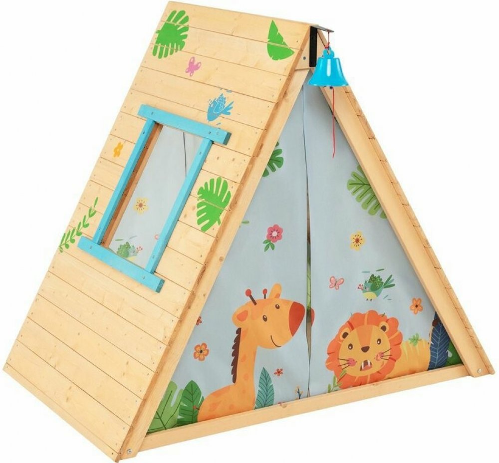 Atributy:Víceúčelový domeček pro dětiNáš hrací set 2 v 1 pro děti se skládá z 1 lezecké stěny a 1 realistického domečku na hraní pro děti. Je také vybaven malým zvonkem, velkým bočním oknem a roztomilým kresleným vzorem, aby byl pro děti mnohem zábavnější. S touto hrací sadou mohou děti rozvíjet své sociální dovednosti, motoriku a koordinaci rukou a nohou.Dostatečně velký prostor pro odpočinek a hraníTento hrací domeček o rozměrech 115 cm (D) x 77 cm (Š) x 100 cm (V) nabízí prostornou hrací plochu pro 2 děti ve věku od 3 do 8 let, kde se mohou schovávat, lézt nebo si hrát. Na druhou stranu tento dětský stan s roztomilými závěsy na dveřích nabízí také soukromý koutek pro děti, kde si mohou číst knížky nebo si zdřímnout.Přírodní materiál z jedlového dřevaNáš hrací stan z kvalitního jedlového dřeva je vhodný pro děti, je bez zápachu, neškodný a neobsahuje BPA, což je bezpečné pro malé děti. Materiál z jedlového dřeva navíc zaručuje vysokou odolnost proti vodě a oděru, takže je vhodný pro vnitřní i venkovní použití.Robustní trojúhelníková konstrukceDětský hrací domeček s pevnou trojúhelníkovou konstrukcí zůstává na zemi stabilní a nekýve se ani se nezhroutí. Lezecká stěna unese hmotnost až 30 kg. Šroubové upevnění a silné příčky navíc zvyšují celkovou odolnost a stabilitu.Snadná montáž a údržbaNáš dřevěný domek na hraní je dodáván se snadno srozumitelným návodem a veškerým potřebným příslušenstvím, takže instalaci zvládnete snadno a rychle. Spojovací prvky na suchý zip vám pomohou bez námahy připevnit naše dveřní závěsy. Voděodolný lakovaný povrch navíc usnadňuje údržbu.Popis: Dveře jsou vybaveny speciální konstrukcí, která je součástí balení:Hledáte hračku na vybití dětské energie? Naše hrací souprava 2 v 1 je ideální volbou. Obsahuje hrací stan, ve kterém se děti mohou schovat nebo odpočívat, a lezeckou stěnu, na které si mohou hrát. Roztomilé závěsy na dveřích mohou také chránit soukromí dětí. Modrý zvonek a velké okno přispívají k zábavě. A je dostatečně prostorný, aby se do něj vešly 2 děti ve věku od 3 do 8 let, takže se děti mohou bavit se svými kamarády. Materiál z jedlového dřeva bez obsahu BPA navíc umožňuje vysokou odolnost a bezpečnost. Díky nosnosti 30 kg a trojúhelníkové konstrukci je lezecká stěna stabilní a snadno se nekýve. Díky suchým zipům lze naše dveřní závěsy také snadno připevnit a sundat.Vlastnosti: Vnitřní prostor je vybaven speciální konstrukcí, která je vhodná k montáži na stěnu:konstrukce 2 v 1 (domeček na hraní a lezecká stěna) poskytuje nekonečnou zábavu.Dostatek prostoru pro 2 děti (3-8 let), které se mohou schovávat, šplhat, odpočívat nebo si hrátRozvíjí sociální dovednosti dětí, motoriku a koordinaci rukou a nohouVybrané jedlové dřevo pro dlouhou životnost a bezpečné používáníIdeální pro vnitřní i venkovní použitíDodatečné upevnění šrouby a silné příčky zajišťují dodatečnou stabilituSuché zipy pro lepší upevnění závěsů na dveříchTechnické údaje:Barva: přírodníMateriál: jedlové dřevoCelkové rozměry: 115 cm x 77 cm x 100 cm (d x š x v)Nosnost lezecké stěny: 30 kgVhodný věk: 3-8 letČistá hmotnost: 14 kgRozsah dodávky:součástí balení je 1 x dětský domeček1 x návod k použití