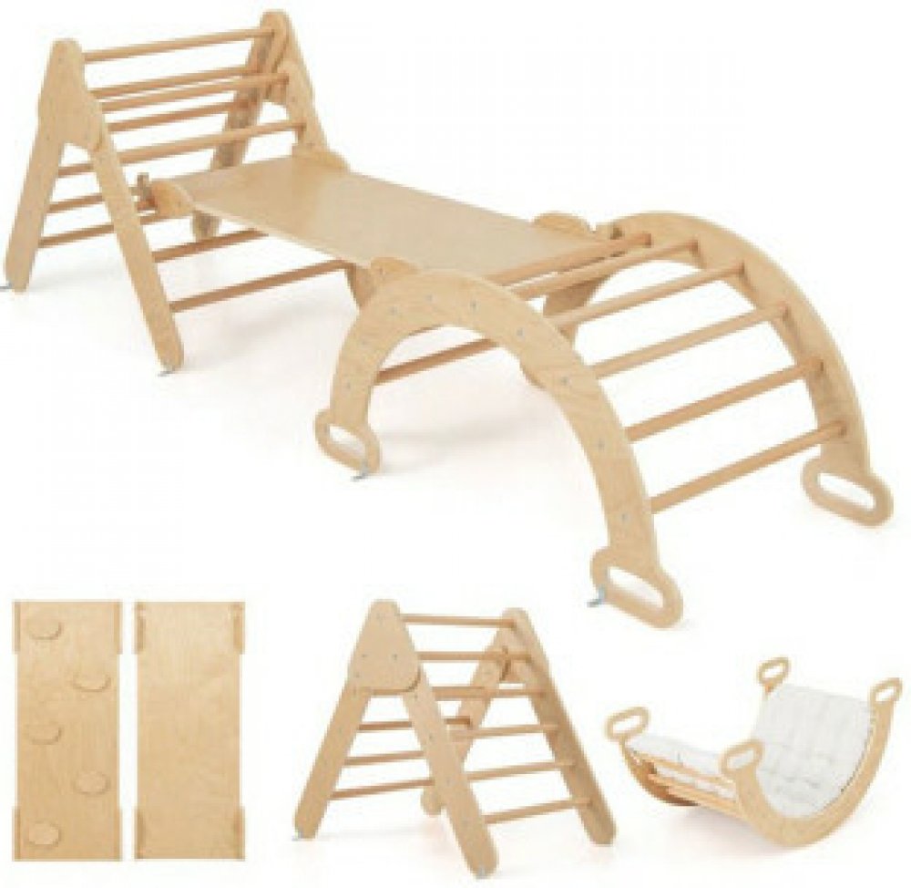 Multifunkční lezecký trojúhelník TS10167MT-NA - B Funkce, vlastnosti a další informace Různé kombinace: Sada se skládá z trojúhelníku, oblouku a rampy, což nabízí nekonečné možnosti hraní a flexibility. Odolný materiál a bezpečný design: Vyrobeno z přírodního bukového dřeva, je bezpečné a odolné. Rampa a oblouk 2 v 1: Rampa umožňuje přepínání mezi skluzavkou a lezením, zatímco oblouk se může stát ...
