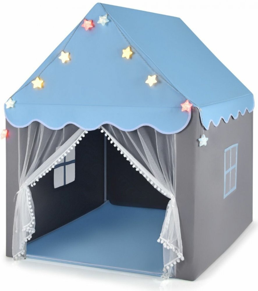 Každé dítě sní o svém vlastním speciálním místě, které bude jeho úkrytem. Náš domeček je místem, které poskytuje osobní prostor, odpočinek a centrum zábavy. Roztomilá chatka umožní dítěti hrát si o samotě, s přáteli nebo s rodiči. Náš výrobek je vyroben z pevných a odolných trubek z PVC a měkkých tkanin. Povlak ušitý ze směsi polyesteru a bavlny je prodyšný a příjemný na dotek a zároveň voděodolný a bavlněná podložka izoluje před studeným podkladem. Produkt lze používat doma i venku a díky nízké hmotnosti si ho bez problémů vezmete s sebou do parku nebo na dětské hřiště. V sadě najdete šňůru barevných lampiček ve tvaru hvězdiček.