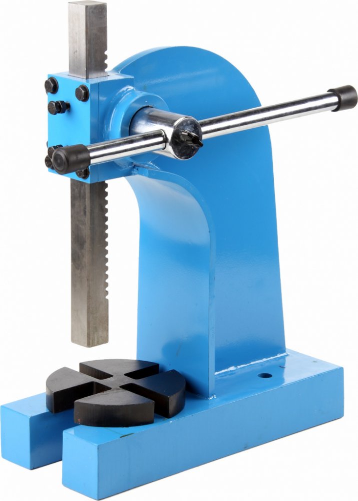 Kvalitní litinový rám umožňuje vyvinout vysokou lisovací sílu. Ideální pro lisování ložisek, pouzder a pro další spojovací práce.Pákový přenos lisovací síly je realizován přes velké ozubené kolo a ozubenou tlačnou tyč. Zdvih nástroje při pootočení pákou o 90° je 40 mm.