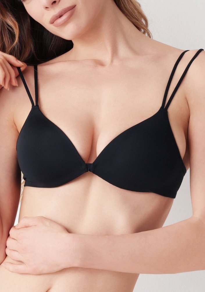 Dámská hladká podprsenka trojúhelníkového střihu od známé italské značky Cotonella. Podprsenka je mírně vyztužená bez kostic. Podprsenka má úzké dvojité ramínka.