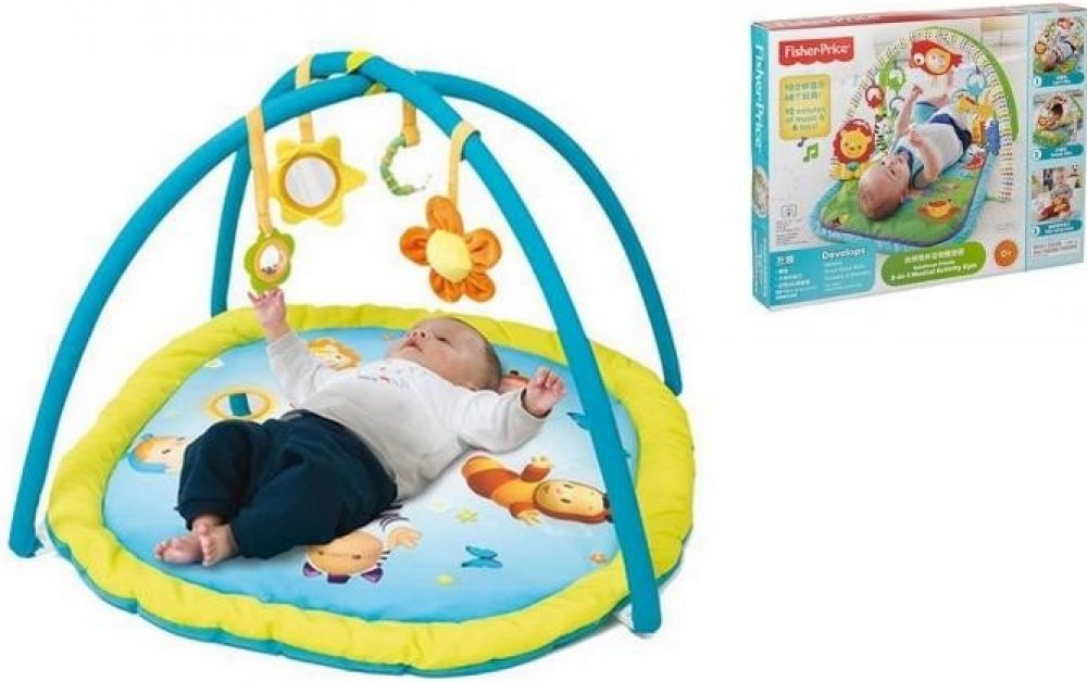 Obsah balení: podložka s konstrukcí, zrcátko, chrastítko 2ks, plyšová kytička