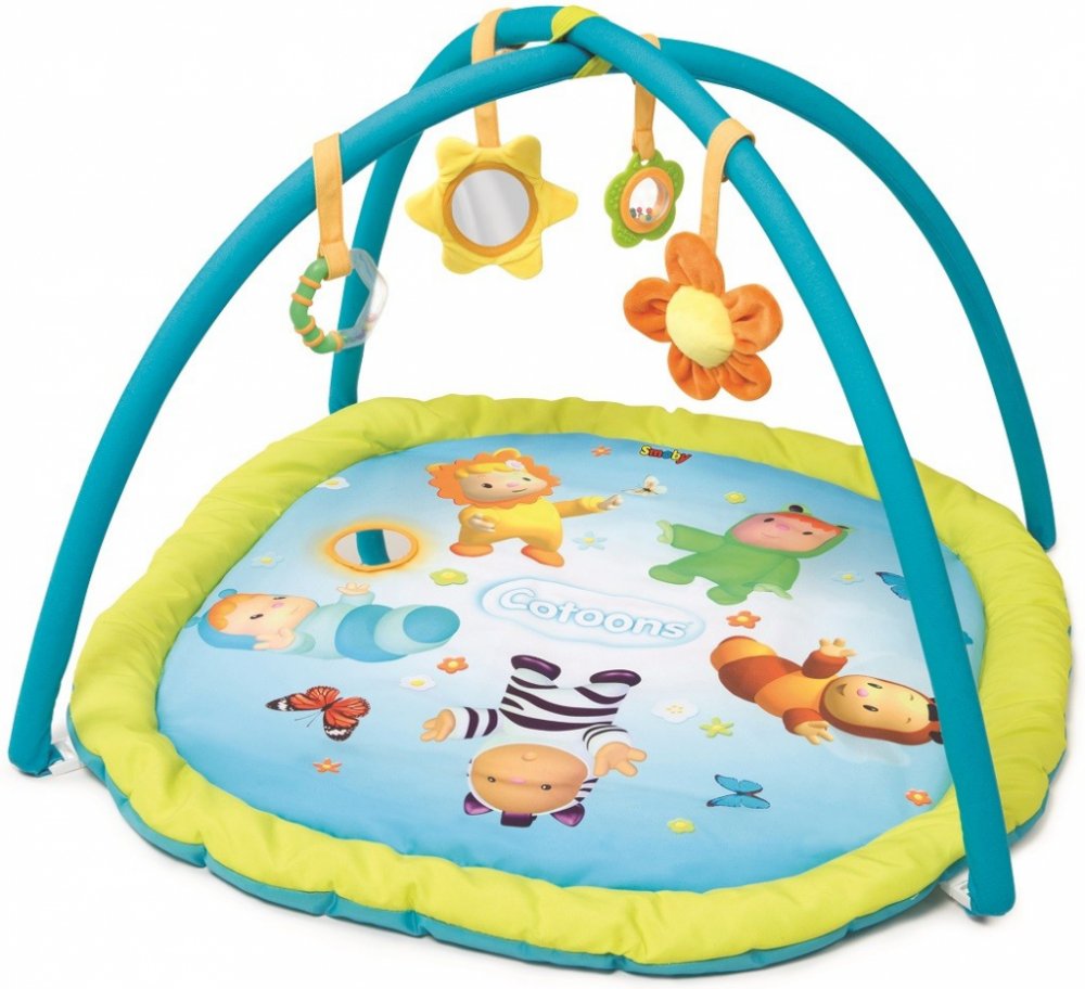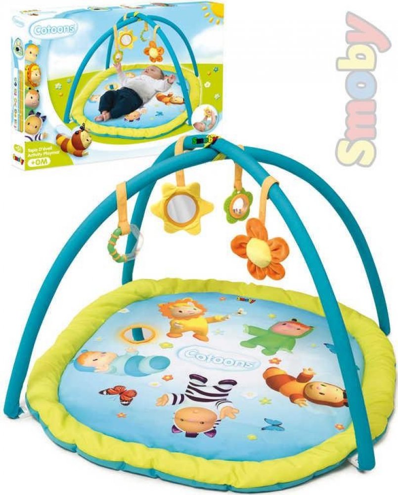 Hrací podložka v licenci Cotoons s hrazdičkou, v něžné zelenomodré barvě pro ty nejmenší chlapečky. Sada se čtyřmi závěsnými doplňky.