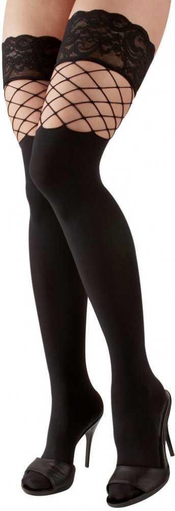 Tmavé dlouhé punčochy Lea jsou vyrobené z příjemně jemného materiálu. Jejich horní část tvoří pruh síťoviny a pruh krajky. Lem krajky je vykrojený do malých vlnek s krásnou vyšívanou texturou. V černém elegantním provedení. Materiál: 92% Polyamid, 8% Elasthan