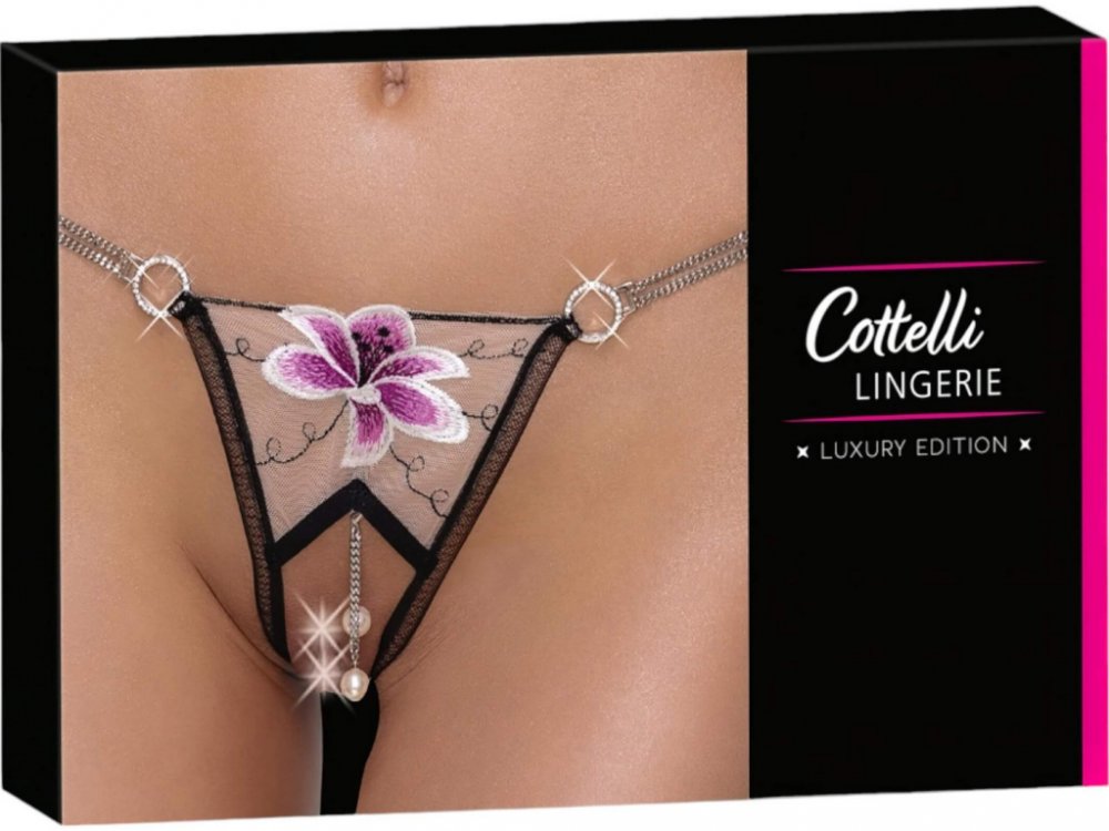 Dopřej si kouzlo luxusu a smyslnosti v každém okamžiku! Proč je to super? Průsvitná síťovina: Zaručuje tajemný a sexy vzhled.Vyšívané lilie: Elegantní a jedinečná dekorace.Svůdné otevřené provedení: Pohodlné a vzrušující i při hrách v páru.Bílé perlové řetízky: Příjemná masáž při každém kroku.Odnímatelné ozdoby: Snadno si změníš styl podle nálady.Na co myslet: Per pouze v ruce ve vlažné vodě s jemným pracím prostředkemNesušit v sušičce, nebělit, nežehlitJemný materiál - zacházej s ním opatrně, skladuj v suchu a chladu.Balení obsahuje 1x průsvitná síťovaná tanga s výšivkou lilie a odnímatelnými perlovými řetízky.Vlastnosti produktu Materiál: 100% polyamid; 90% polyamid, 10% elastan.Barva: kombinace černé, fialové a bílé.Přednosti: Průsvitná síťovina, otevřený klín, ozdobné pružné pásky.Ozdoby: Kroužky se zirkony, výšivka lilie, odnímatelné perlové řetízky.Údržba: Prát v ruce, nebělit, nežehlit
