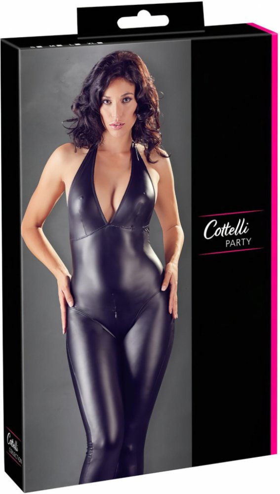 Cottelli Party - vykrojený lesklý overal (černý) Smyslný černý overal s krkem na zavazování, který umožňuje díky svému dvoucestnému zipu nahlédnout tam, kde jen chcete! Proč je skvělý? Jemný, pružný, lesklý materiálBezrukávkový overal s dlouhými nohavicemiDesign s vázáním za krk - zapínání na háček vzaduKvalitní provedení - krásně zpracované okrajeS dvoucestným zipem - otevíratelný od předu přes rozkrok až dozadu Na co si dát pozor: Prát ručně ve vodě s jemným pracím prostředkem, nesmí se žehlit, nesušit v sušičce, nebleachovat Vlastnosti: overal s vázáním za krkz pružného, lesklého materiálus dvoucestným zipem (od předu krku až dozadu)barva: černámateriál: 90% polyester, 10% spandex