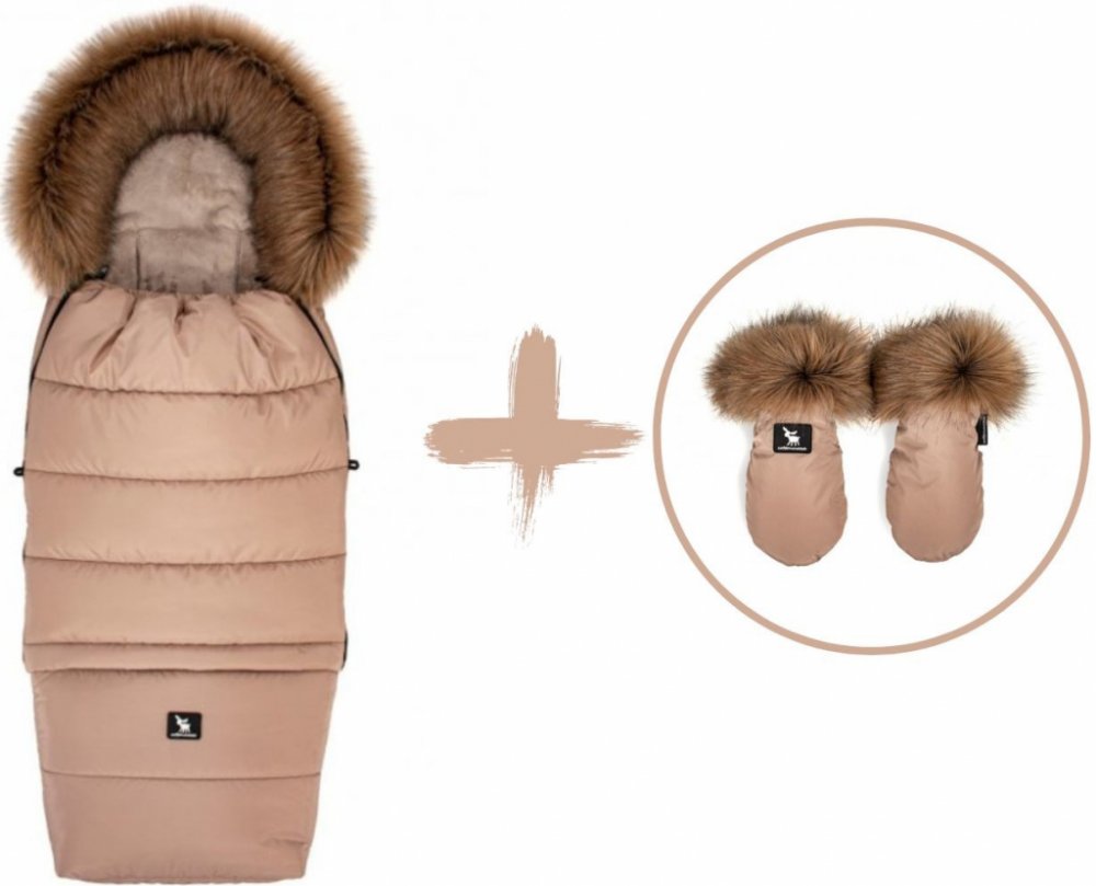 Cottonmoose Set zimní fusak s rukavicemi COMBI YUKON 3v1 Camel kávová