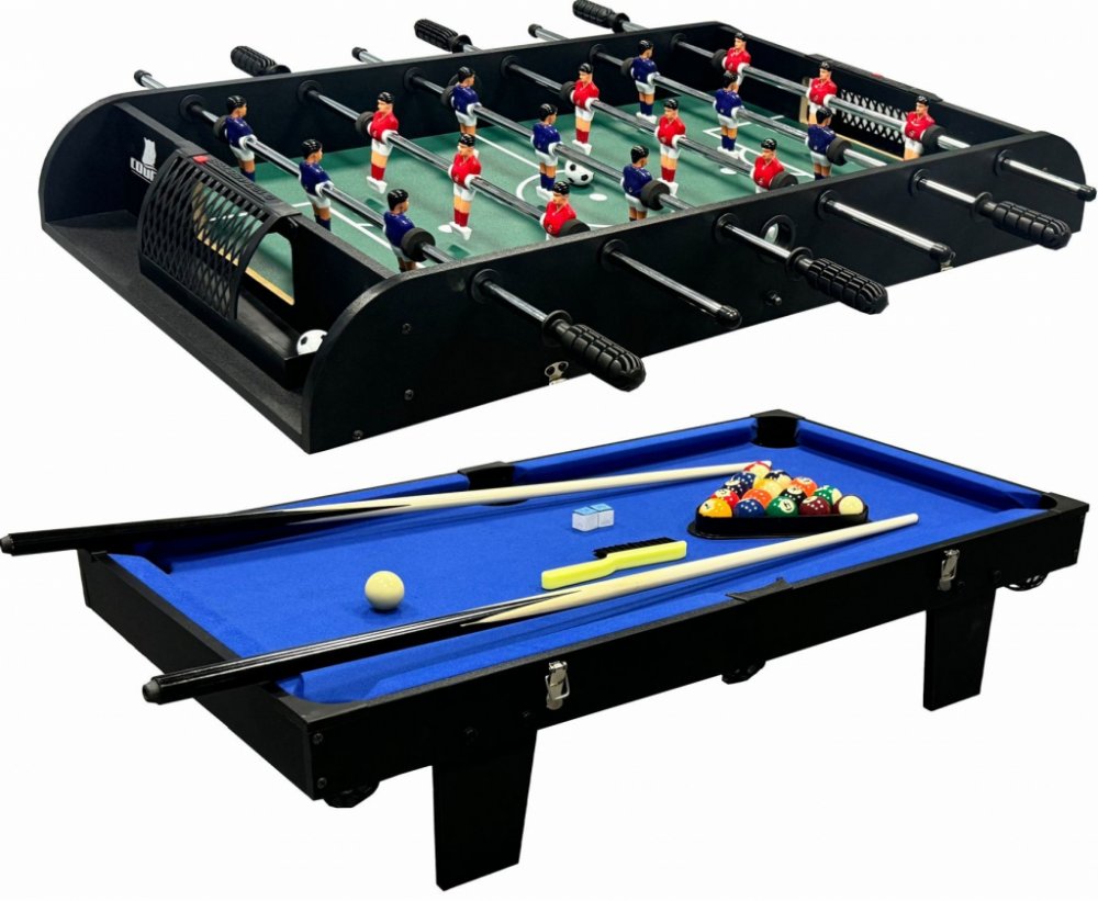 Herní stůl je vyroben z MDF a kovu, což zajišťuje stabilní a robustní design. S věkovým doporučením od 8 let a výše a dobou sestavení asi 30 minut je tento herní stůl ideální pro rychlé zahájení hraní. Ať už si chcete zahrát kulečník nebo vzrušující hru stolního fotbalu, tento herní stůl poskytuje vše, co potřebujete pro hodiny zábavy!
