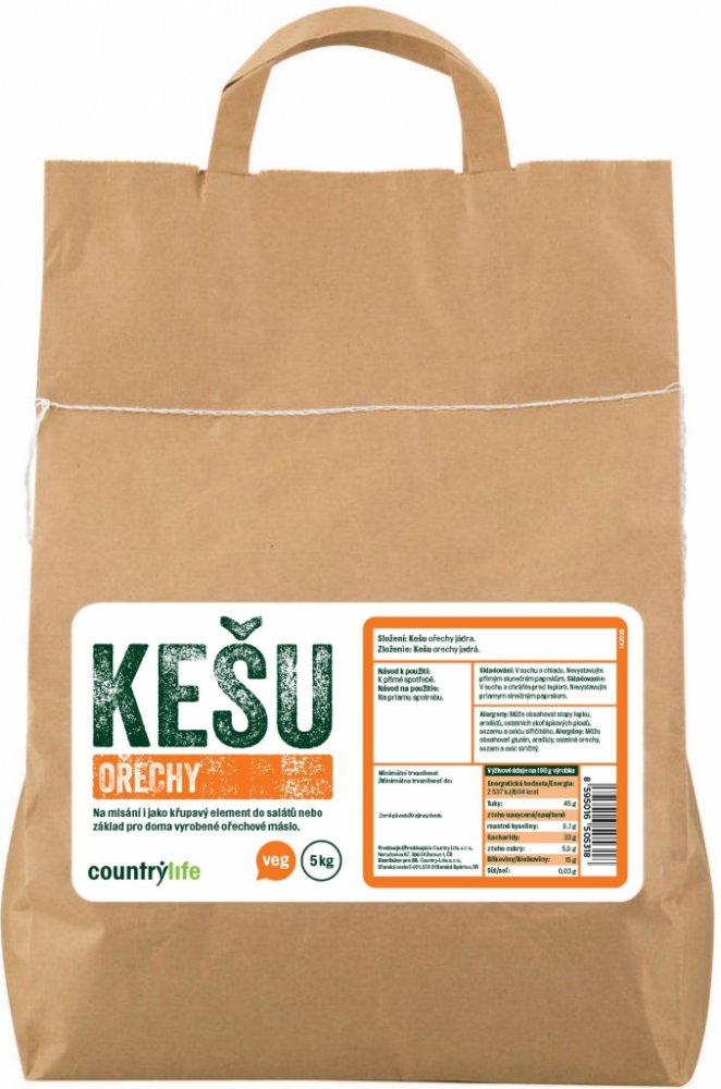 Country Life kešu 5000 g celé ořechy z Brazílie v sáčku