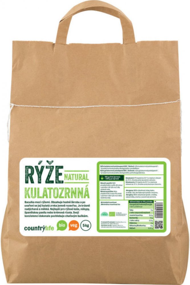 Kulatozrnná rýže je typická vysokou lepivostí a tudíž krémovou konzistencí. Ideální na přípravu italského “rissota”. Natural značí, že při výrobě není leštěná nebo broušená. Jedná se o rýži v biokvalitě. Rýže je také přirozeně bezlepková. Složení : Rýže kulatozrnná pololoupaná*. Může obsahovat stopy lepku, arašídů, sóji, sezamu a skořápkových plodů. *produkt kontrolovaného ekologického zemědělství
