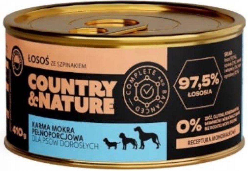 Vysokomasité vlhké krmivo s lososem, špenátem a koprem pro dospělé psy všech plemen. Monoproteinovou formuli založenou na přírodních složkách lze podávat také domácím mazlíčkům s potravinovými alergiemi a zažívacími problémy.