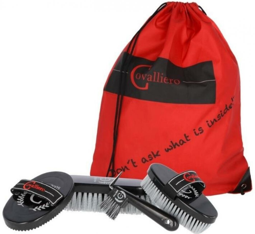 sada obsahuje kopytní háček, hřbílko, rýžový kartáč a kartáč na tělo