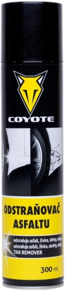 Popis: Coyote odstraňovač asfaltu účinne odstraňuje znečistenia na karosérii spôsobené asfaltom, živicami, dechtom, olejmi a podobnými látkami. Zbavuje tiež zvyšky lepidla po nálepkách.Použitie: Pred použitím odporúčame vyskúšať prípravok na nenápadnom mieste. Nastriekajte alebo naneste malé množstvo na znečistené miesto, nechajte krátko pôsobiť (10–30 sekúnd), potom zotrite čistou handrou alebo hubkou. Pri silnom znečistení postup opakujte. Po ošetrení odporúčame povrch umyť vodou so saponátom.Upozornenia: Nepoužívať na horúce povrchy alebo na priamom slnku. Pred použitím otestujte na plastových a gumových častiach, aby nedošlo k poškodeniu. Používajte ochranné rukavice a zabezpečte dostatočné vetranie. V prípade kontaktu s očami okamžite vypláchnite veľkým množstvom vody a vyhľadajte lekársku pomoc. Horľavé — držať mimo dosahu zdrojov tepla a otvoreného ohňa.Skladovanie: Uchovávajte v pôvodnom obale, dobre uzavreté, na chladnom a suchom mieste pri teplote 5–30 °C, mimo dosahu detí a domácich zvierat. Chráňte pred priamym slnečným žiarením.