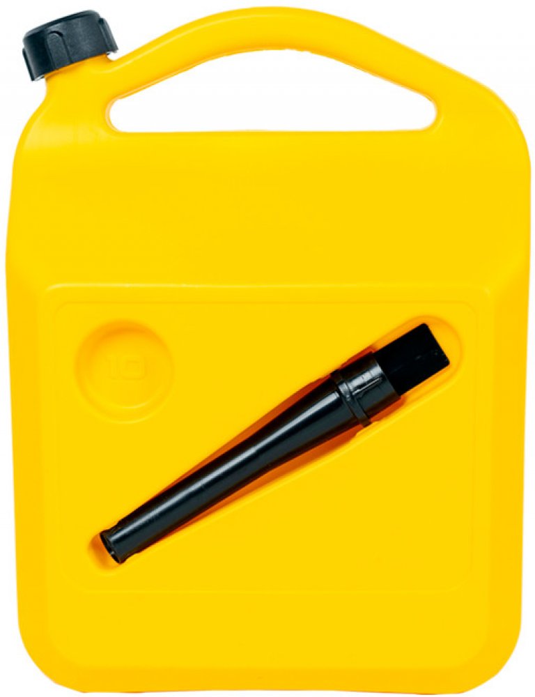 Plastový kanystr určený pro pohonné hmoty s průhledným proužkem pro zjištění množství pohonných hmot v kanystru.