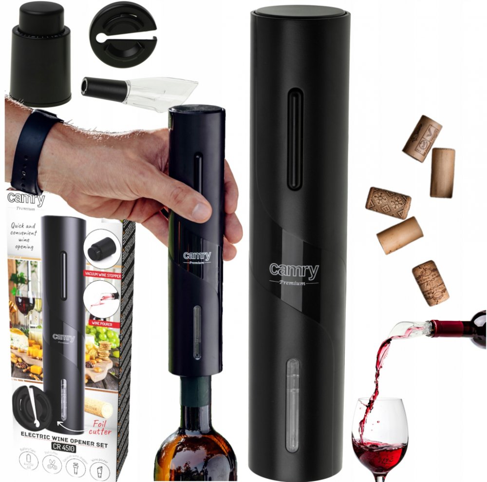 Elektrický otvírák na víno Camry CR 4510 ➡ + dávkovač + zátka + kleštičky ⬅