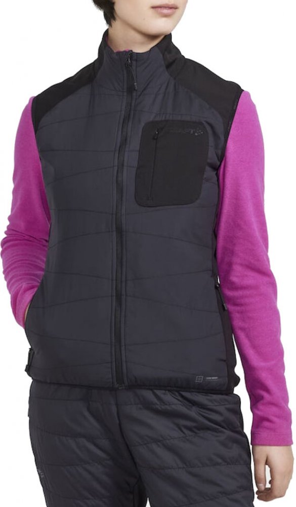 Dámská vesta s mírným zateplením na přední straně určená primárně pro běžecké lyžování. Materiál: Přední část - 60% recylovaný polyester, 40% polyester, Zadní část - 100% polyester, Membrána - 100% polyuretan