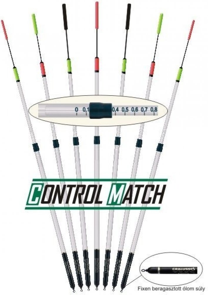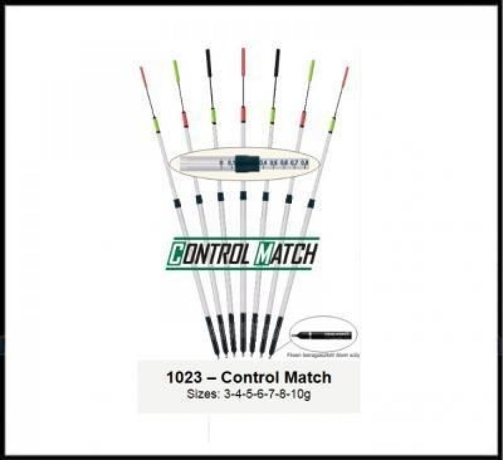 Splávek Control match získal díky svému úzkému tvaru velikou citlivost. Další jeho výhodou je velmi oblíbený kalibrační systém, který Vám umožní velmi rychlé vyvážení splávku, bez přidání nebo odebrání zátěže. Při úplném zatlačení dříku, lze s tímto splávkem chytat úplně bez zátěže. Je celý vyroben z plastu, takže Vám odpadají starosti s jeho životností, která je opravdu velká. Balení obsahuje anténku na uhlíkovém dříku. Je dodávám v těchto velikostech 3 - 4 - 5 - 6 - 8 - 10 g.